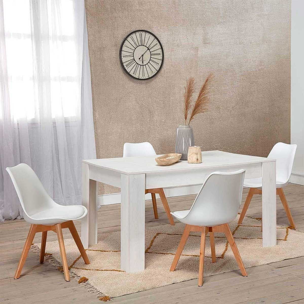 Mesa de comedor Bass extensible blanco mate 76,1x140,4-200x90,4 cm