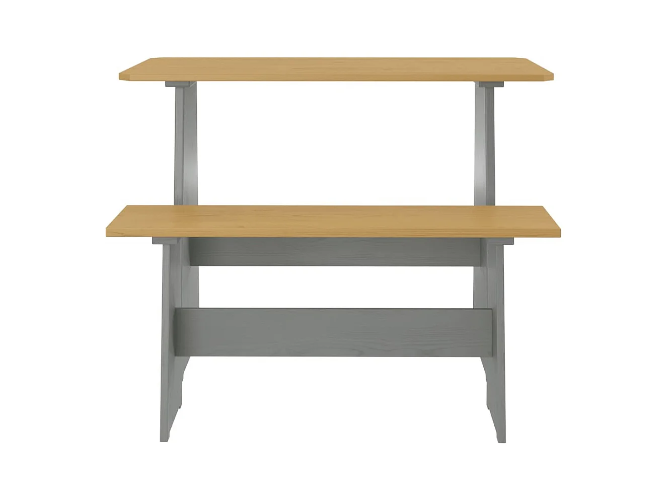 Mesa de comedor con banco REINE madera maciza pino marrón gris