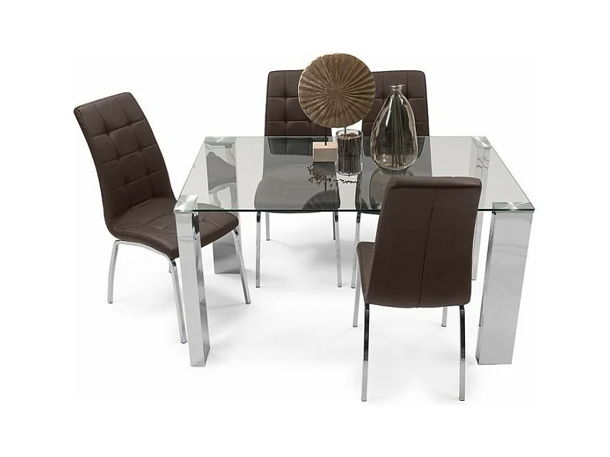 Mesa de Comedor Fija | Tapa de Cristal y Patas Metálicas | Medidas: 140 x 90 x 76 cm (Largo x Ancho x Alto)
