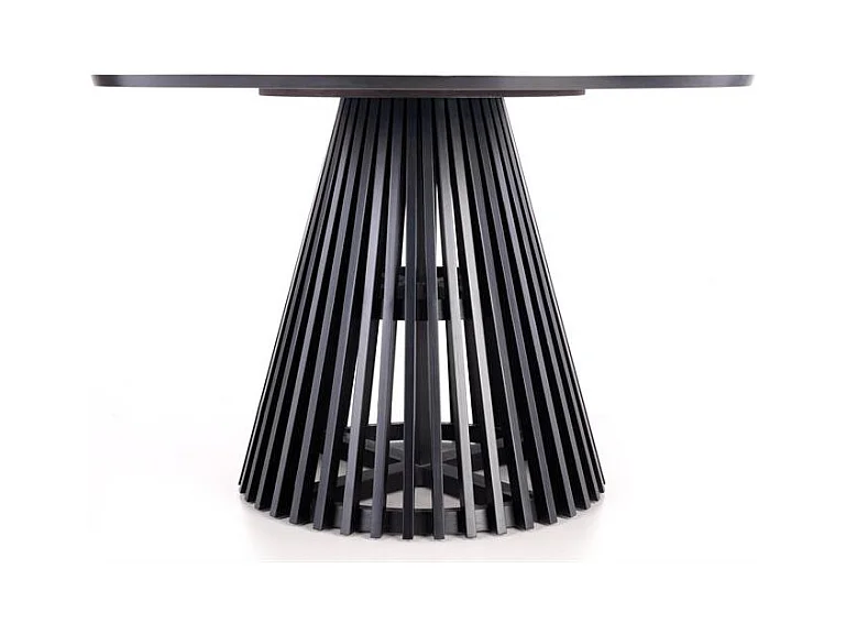 Mesa de comedor contemporánea redonda con tablero de aspecto roble natural y pata central negra OCTANT