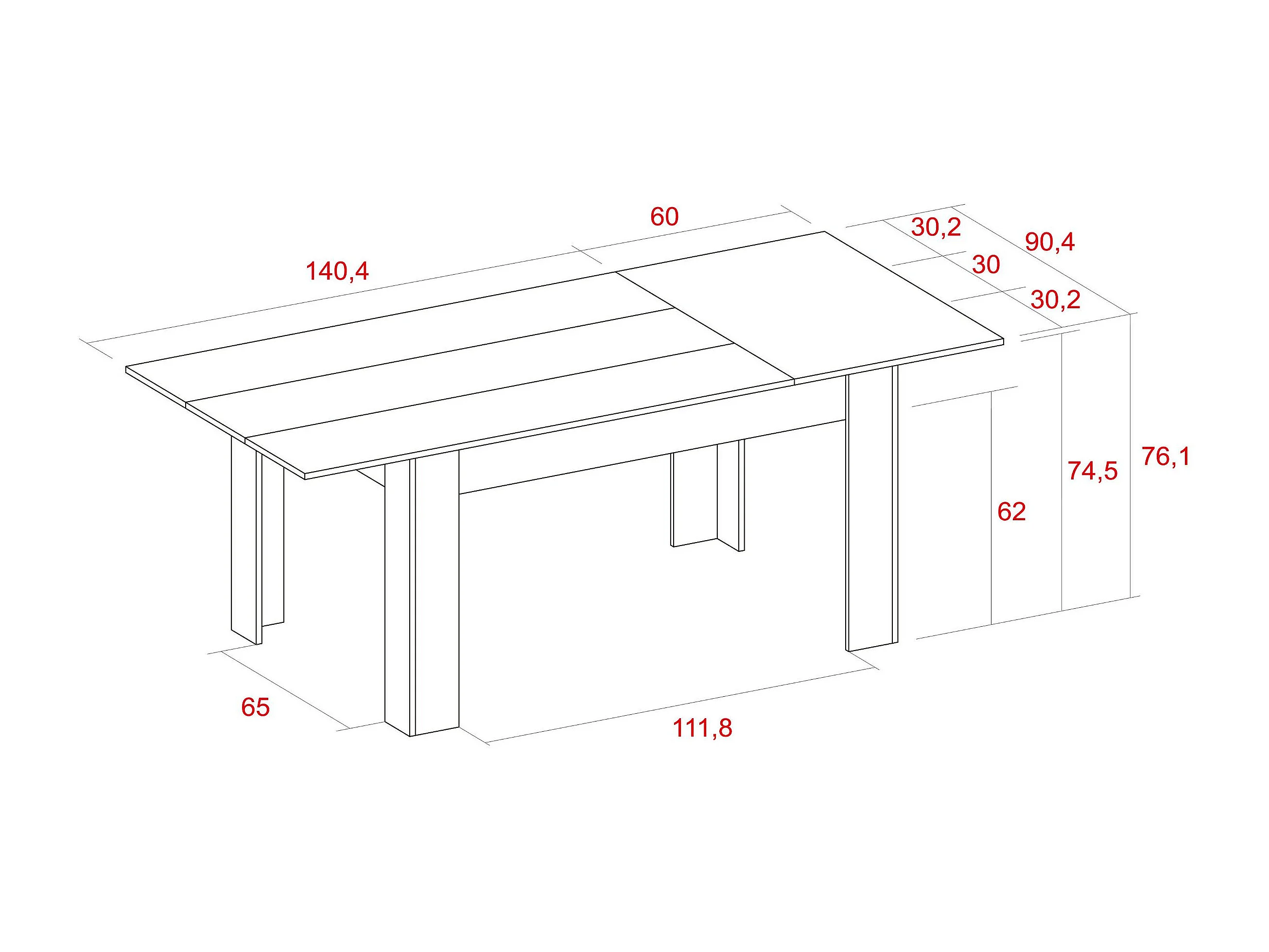 Mesa de Comedor de 140cm extensible 200cm, Color Naturale.