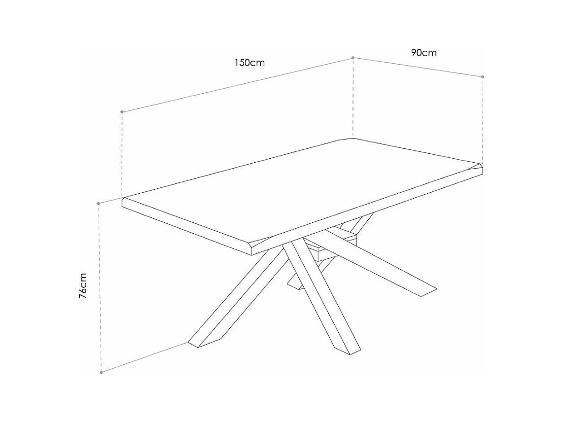 Mesa de comedor de 76x150x90 cm en color roble nordish y patas metálicas blancas Gael