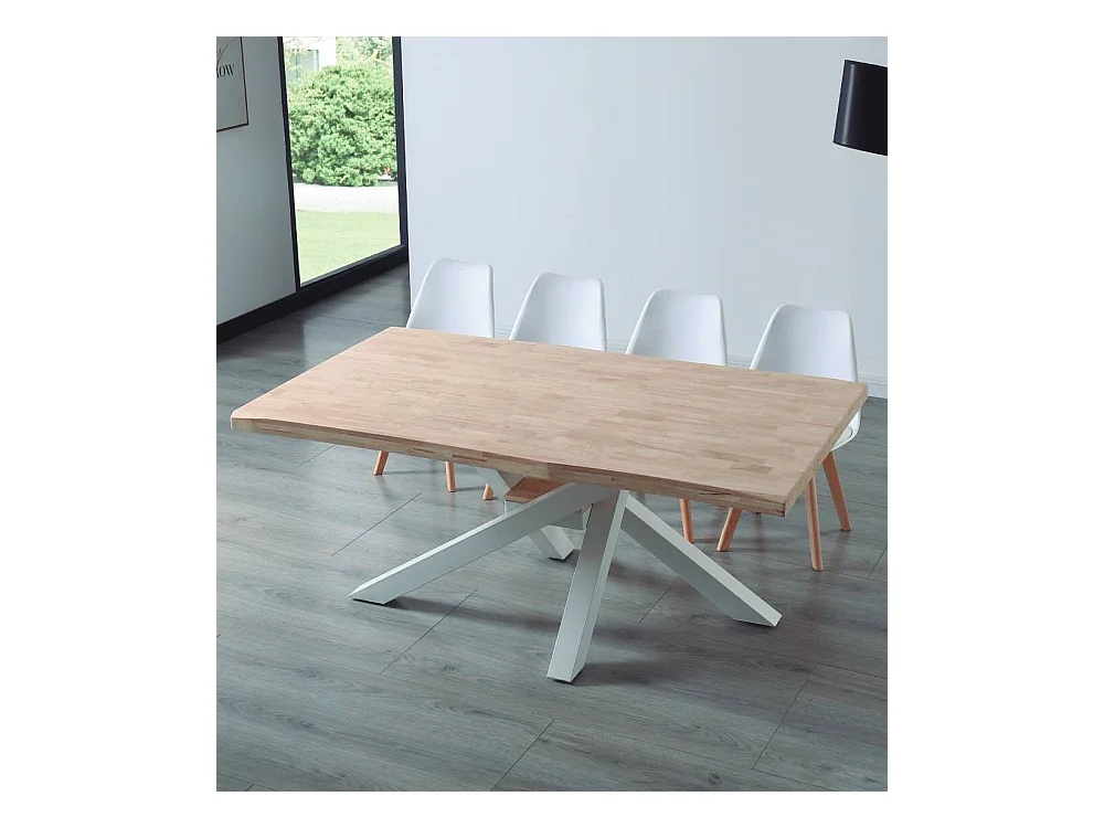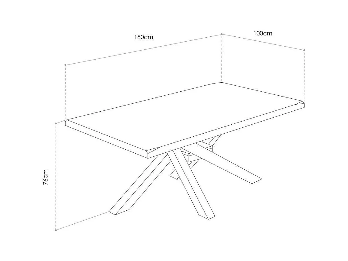 Mesa de comedor de 76x180x100 cm en color roble nordish y patas metálicas blancas Gael