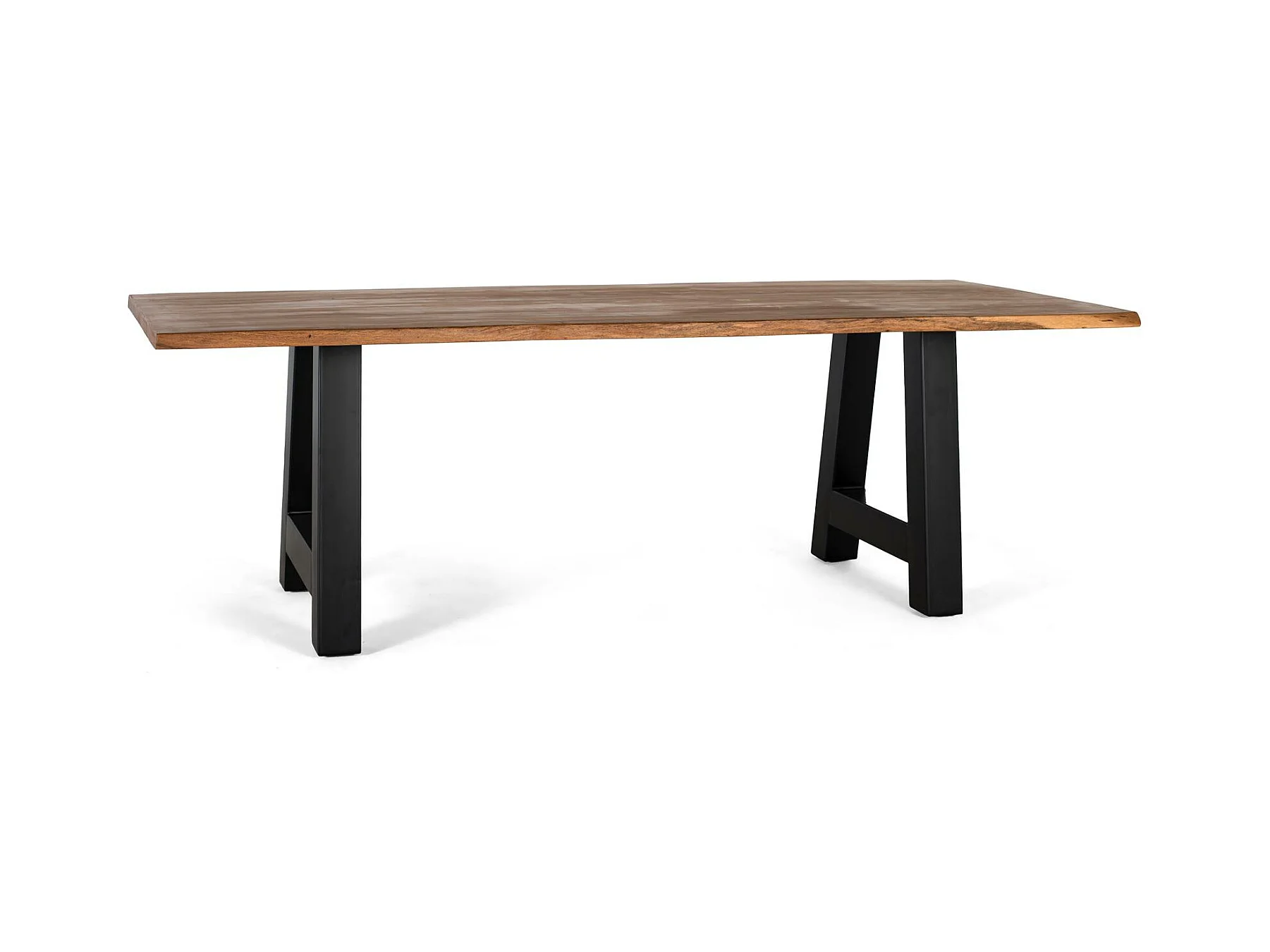 Mesa comedor en madera acacia natural y patas de metal negro Marrón.Giner y Colomer 78x100x240