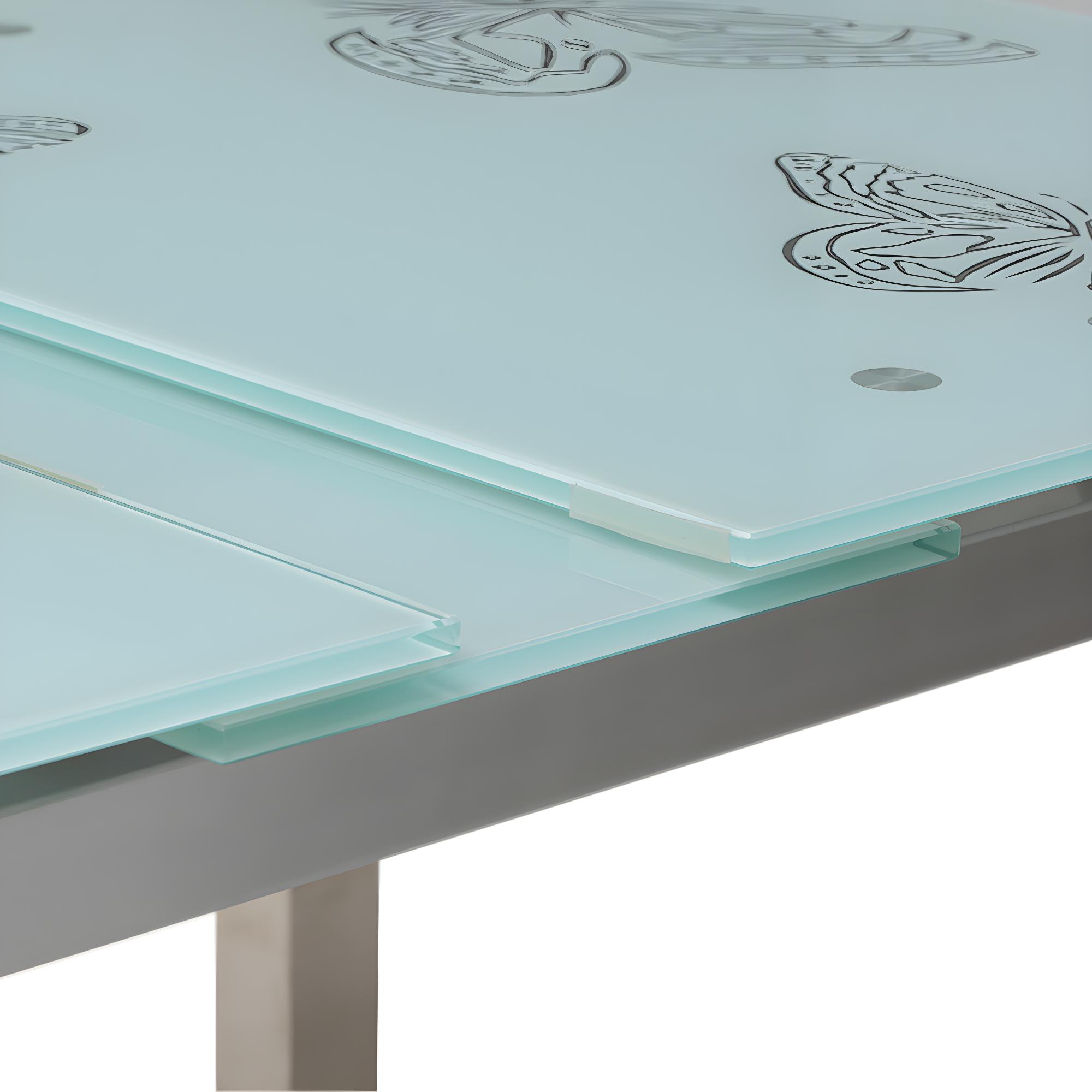 Mesa de comedor de cristal templado extra grueso 140x85x75cm extensible con mecanismo automatizado