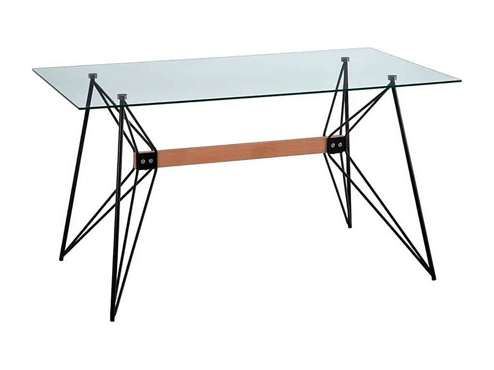 Mesa de comedor de diseño Phoenix 140x80cm con tapa de cristal y patas de metal