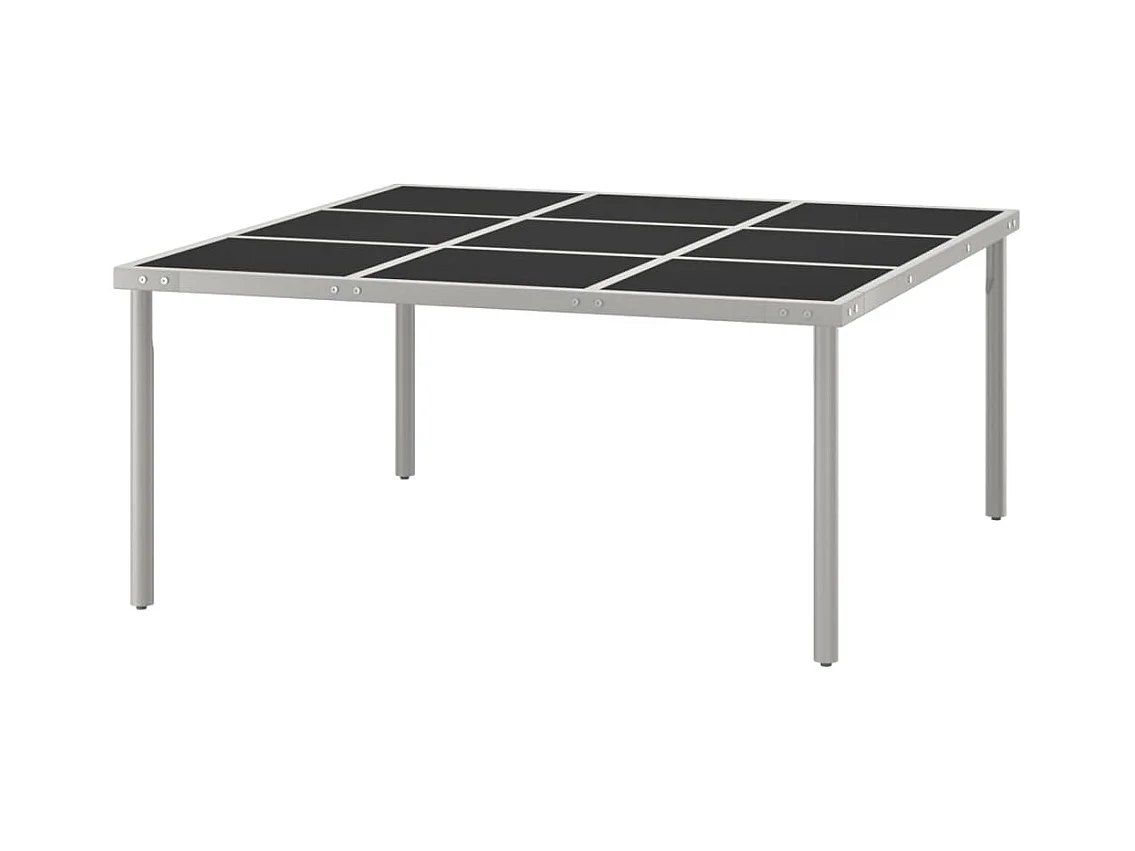 Mesa de comedor de jardín acero y vidrio negra 80x80x74 cm