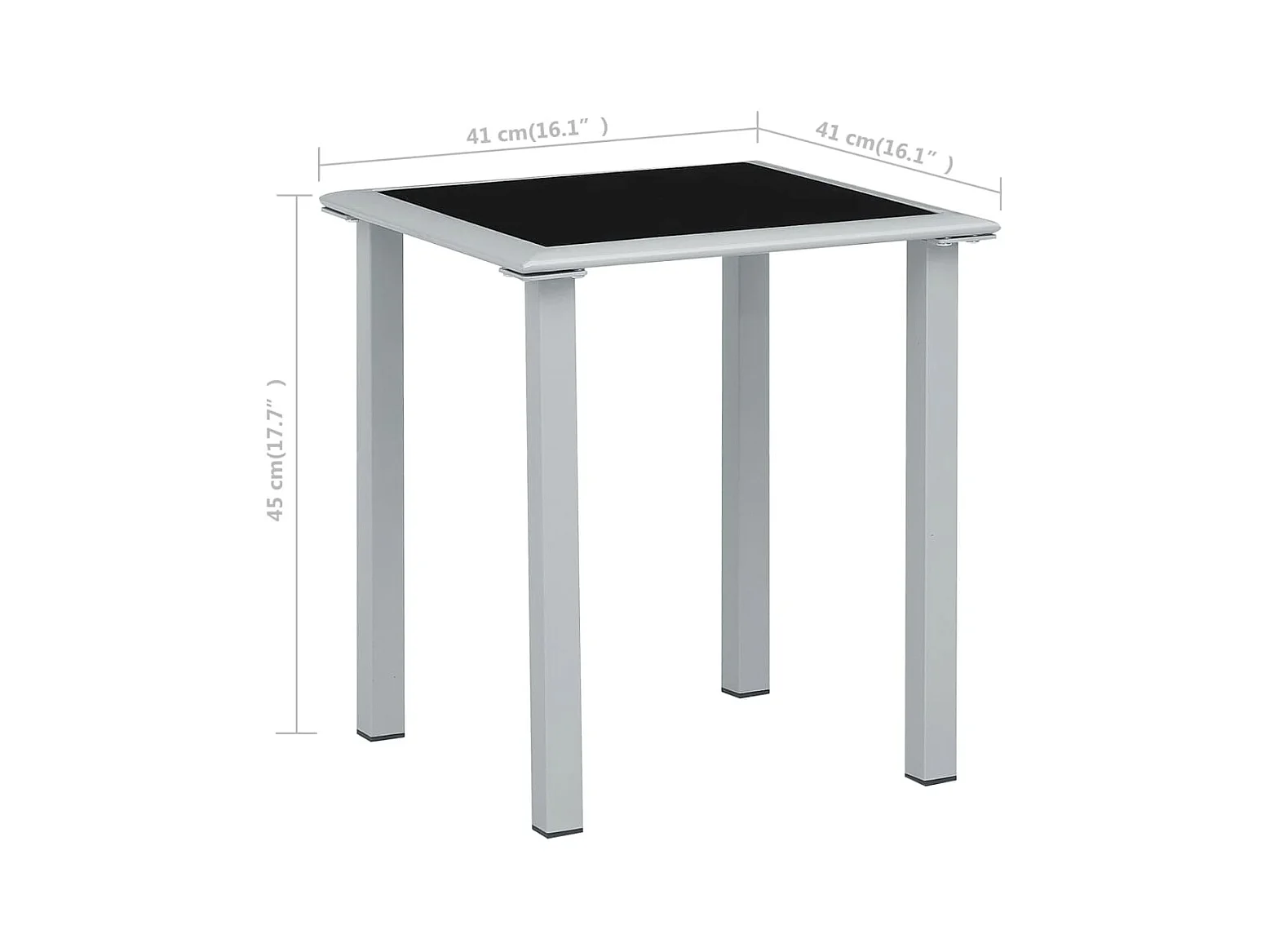 Mesa de comedor de jardín acero y vidrio negro y plateado 41x41x45 cm KOW51536