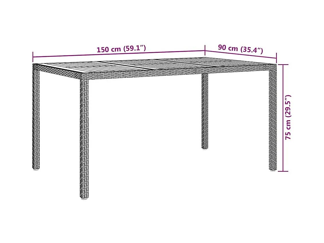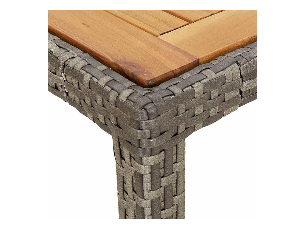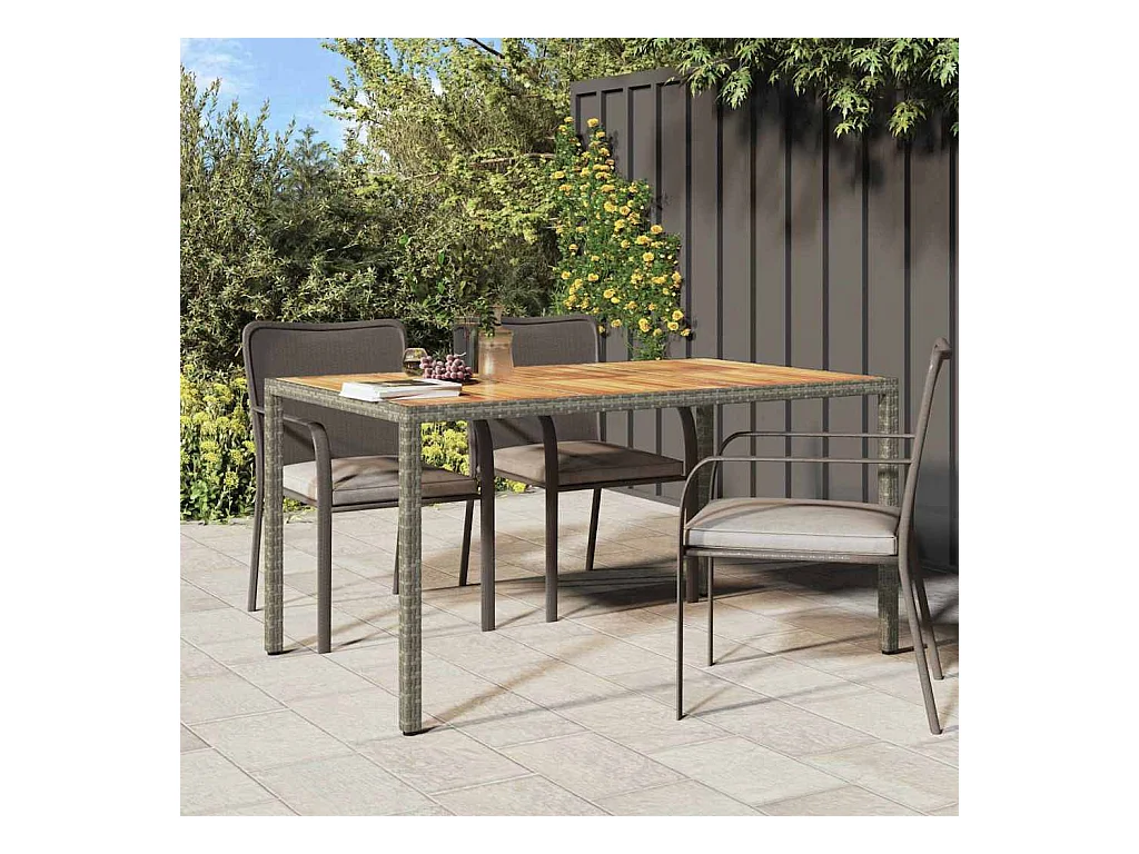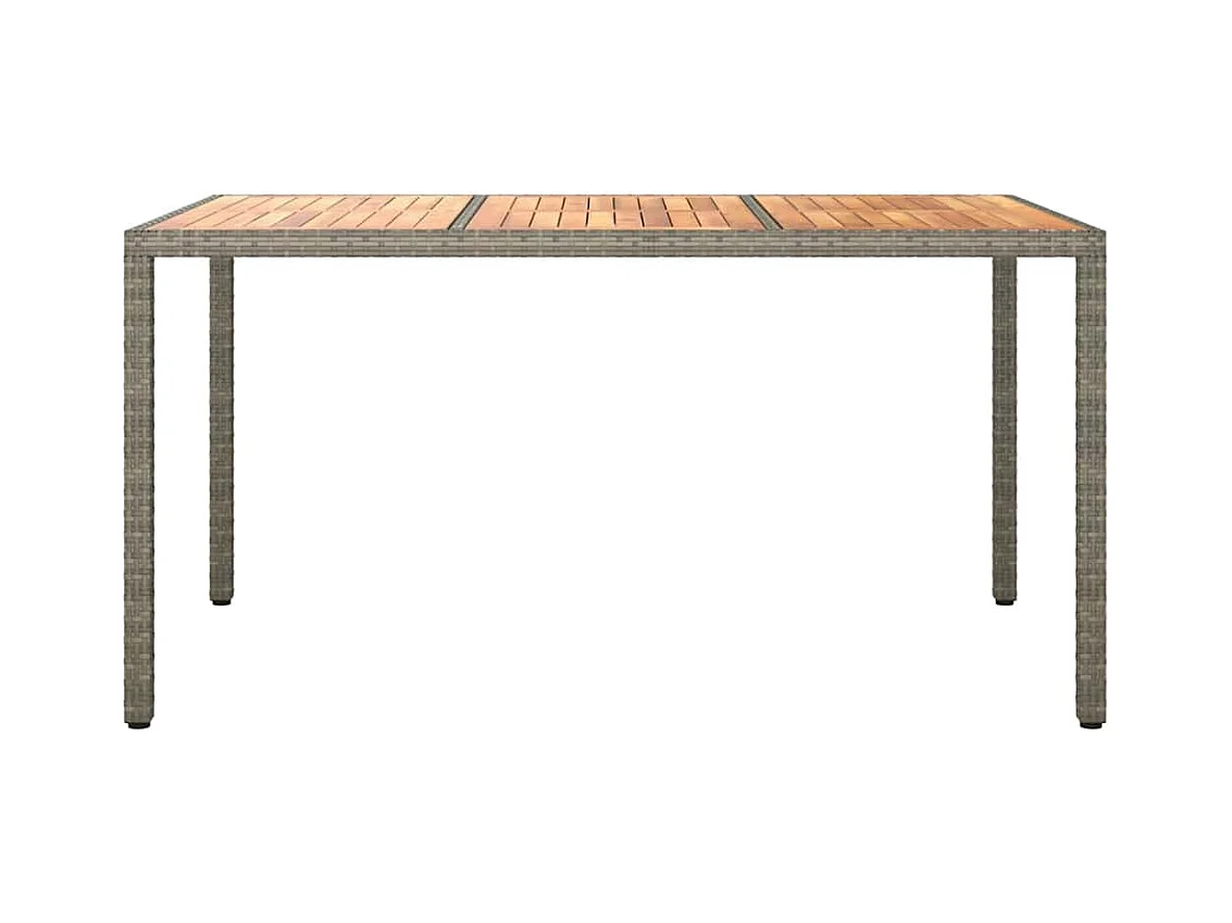 Mesa de jardín con tablero de madera, Gris, 150x90x75 cm, resina trenzada