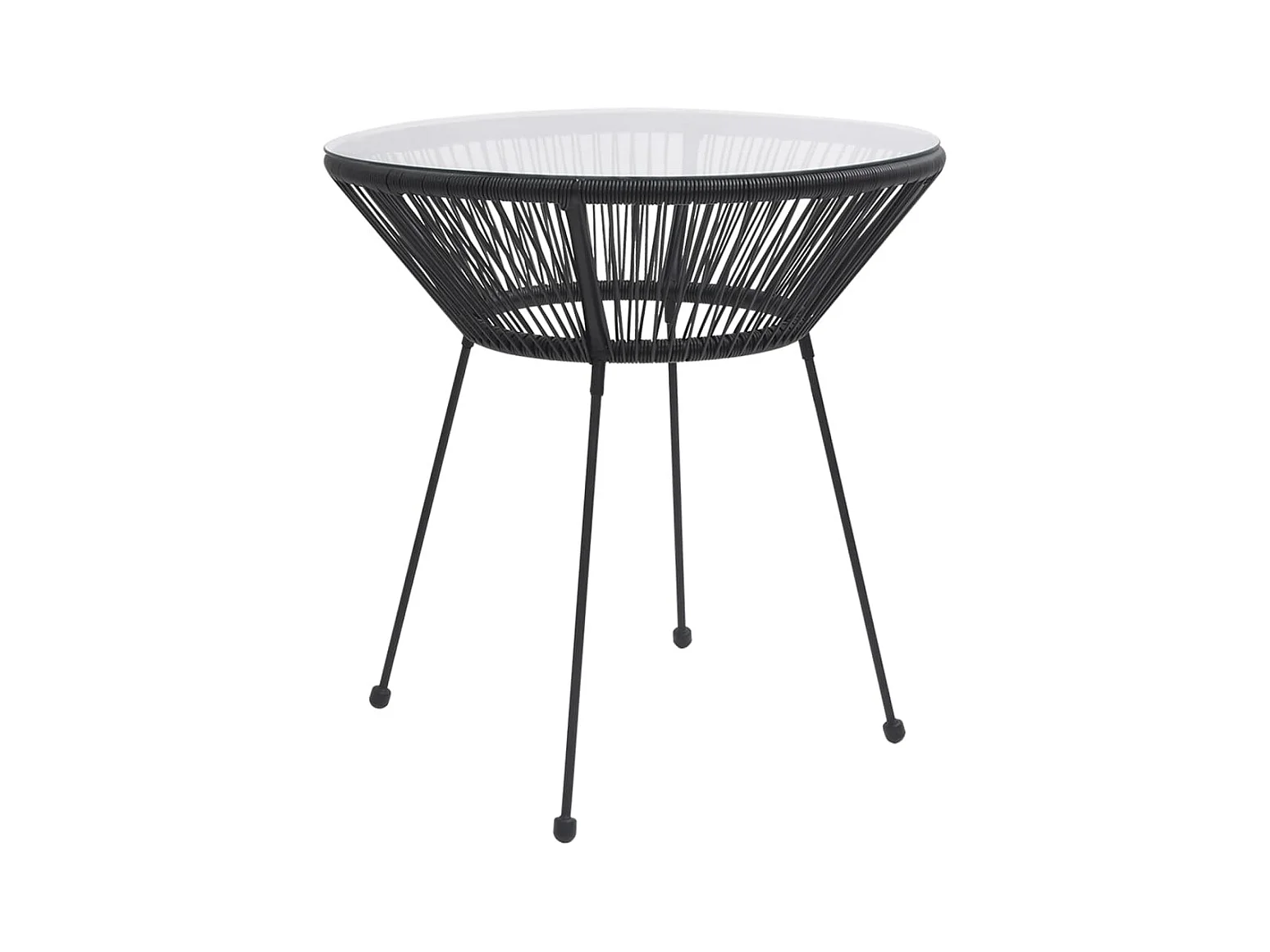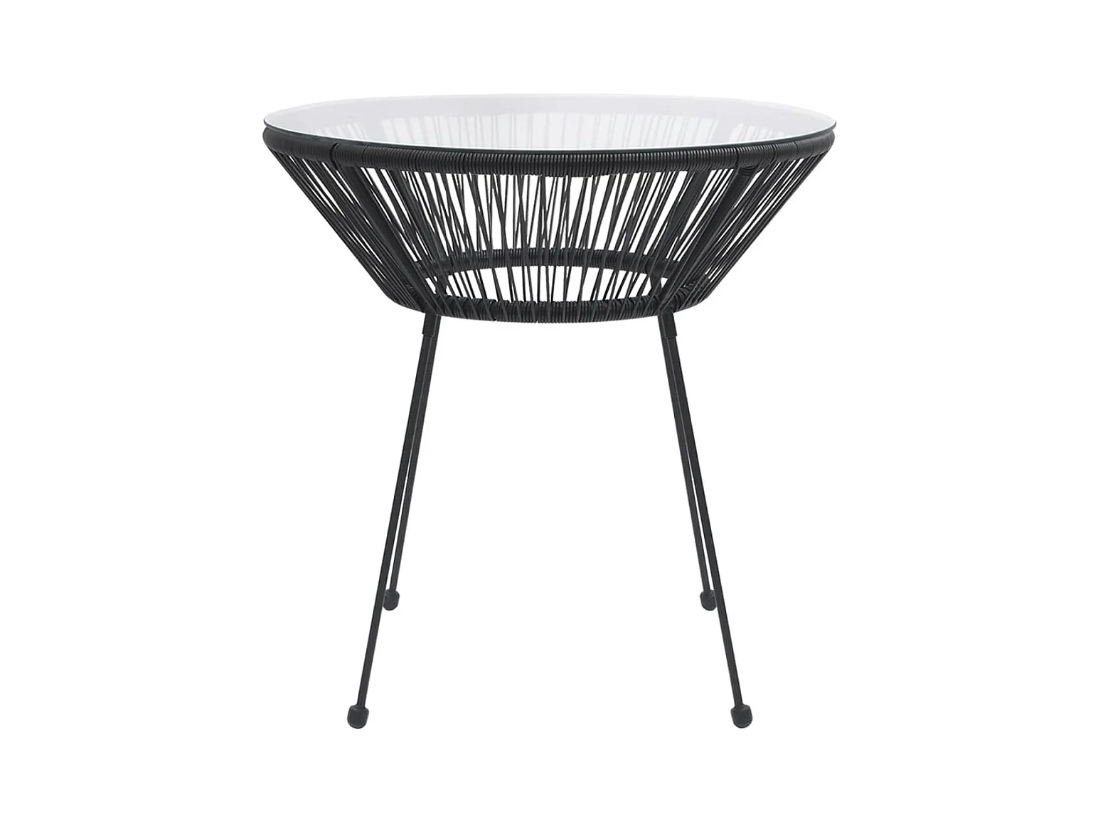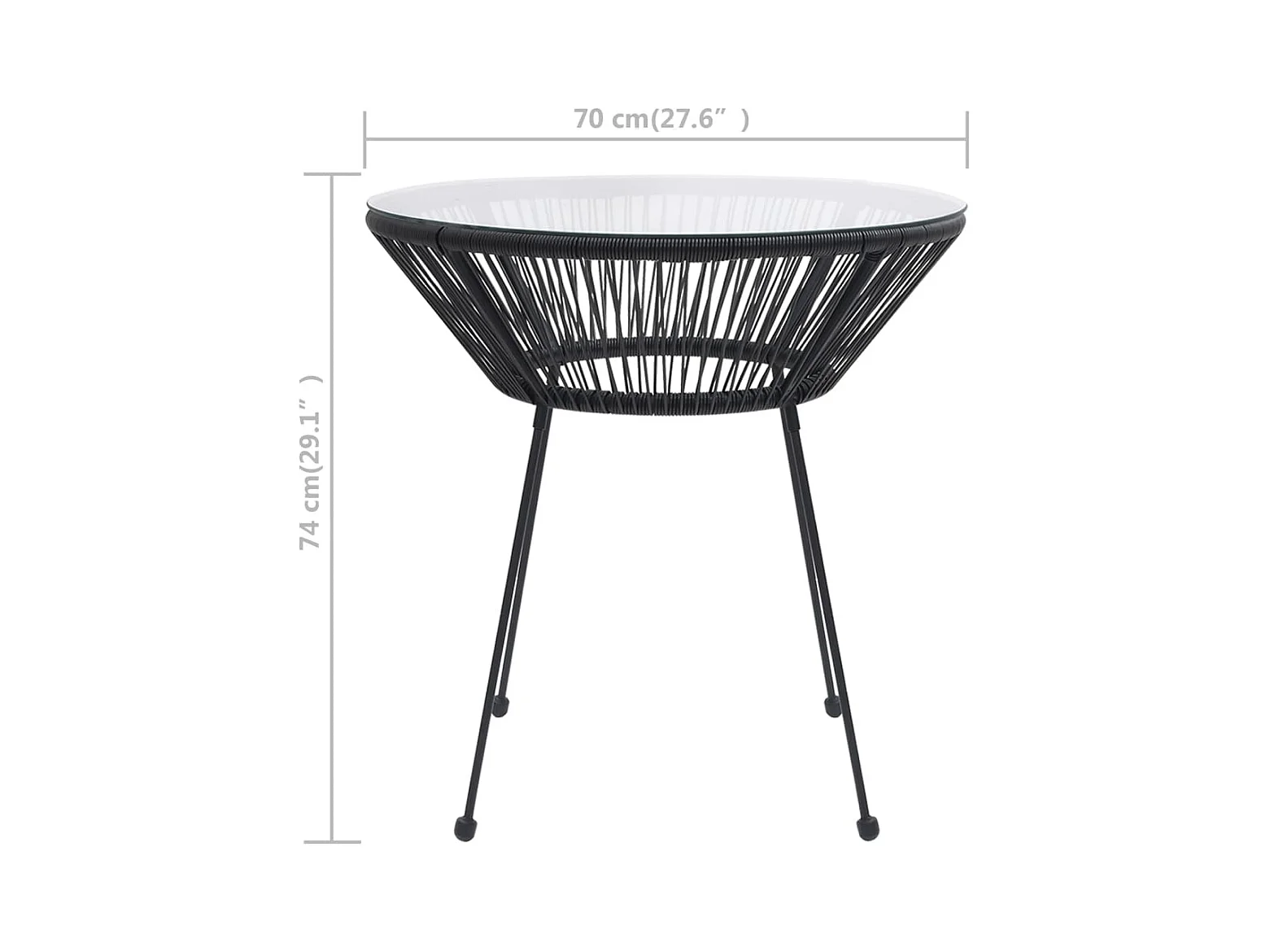 Mesa de comedor de jardín negra Ø70x74 cm Ratán y cristal