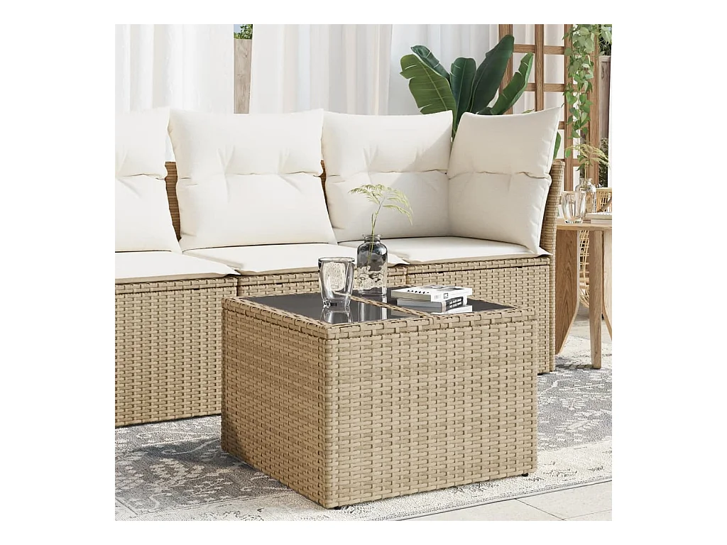 Mesa de centro de ratán PE vidrio templado beige 41,5x41,5x44cm KOW69210