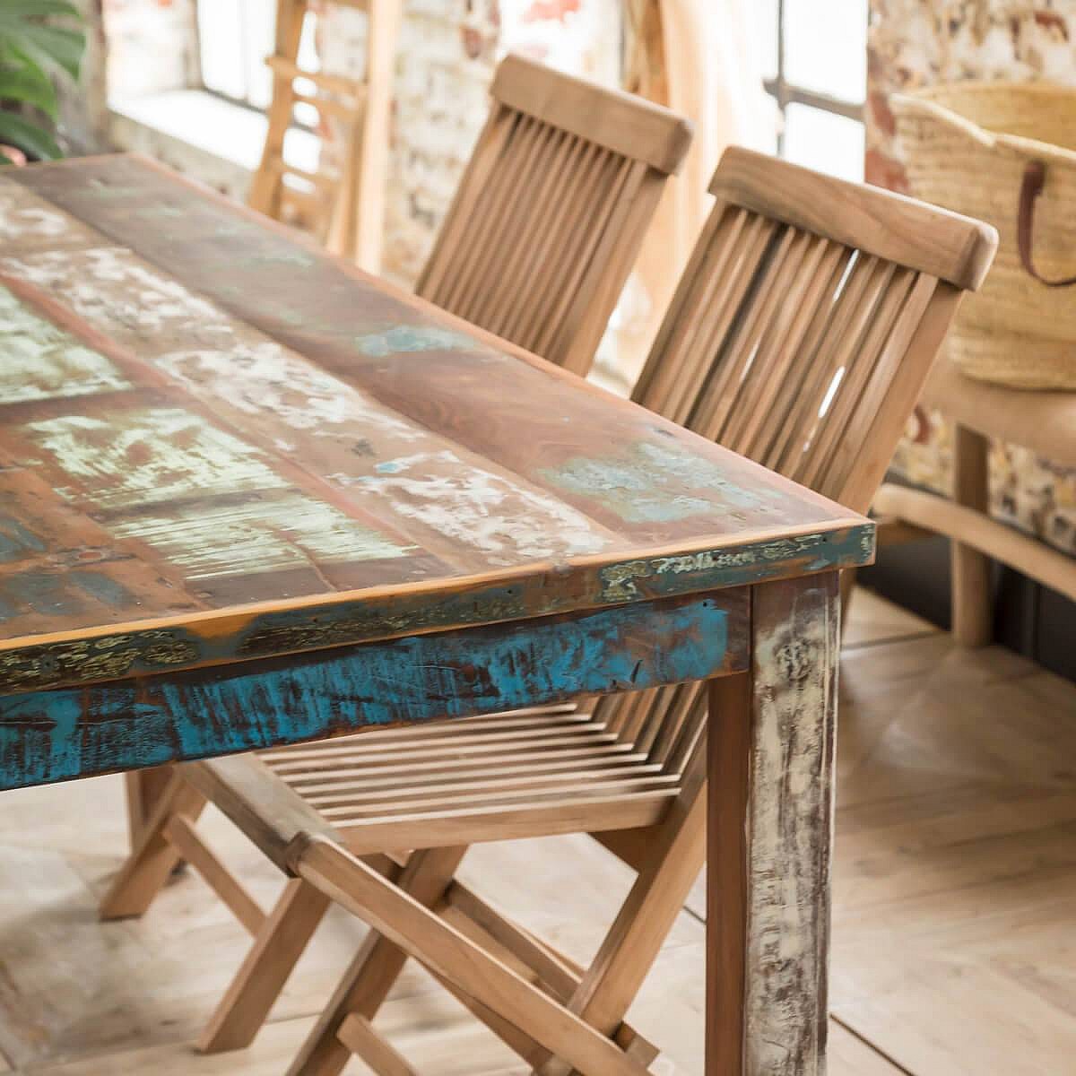 Mesa de comedor de madera colorida Ethnik para 6 personas