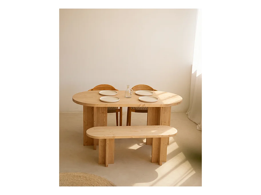 Pack de mesa de comedor de 160x78cm y banco de 120x45cm de madera maciza de abeto Decowood en tono roble medio - TOKYO - DECOWOOD