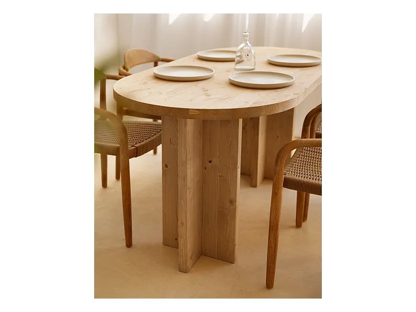 Mesa de comedor de madera de abeto maciza ovalada Decowood en tono roble medio de 180x75,2cm - BLOOM - DECOWOOD