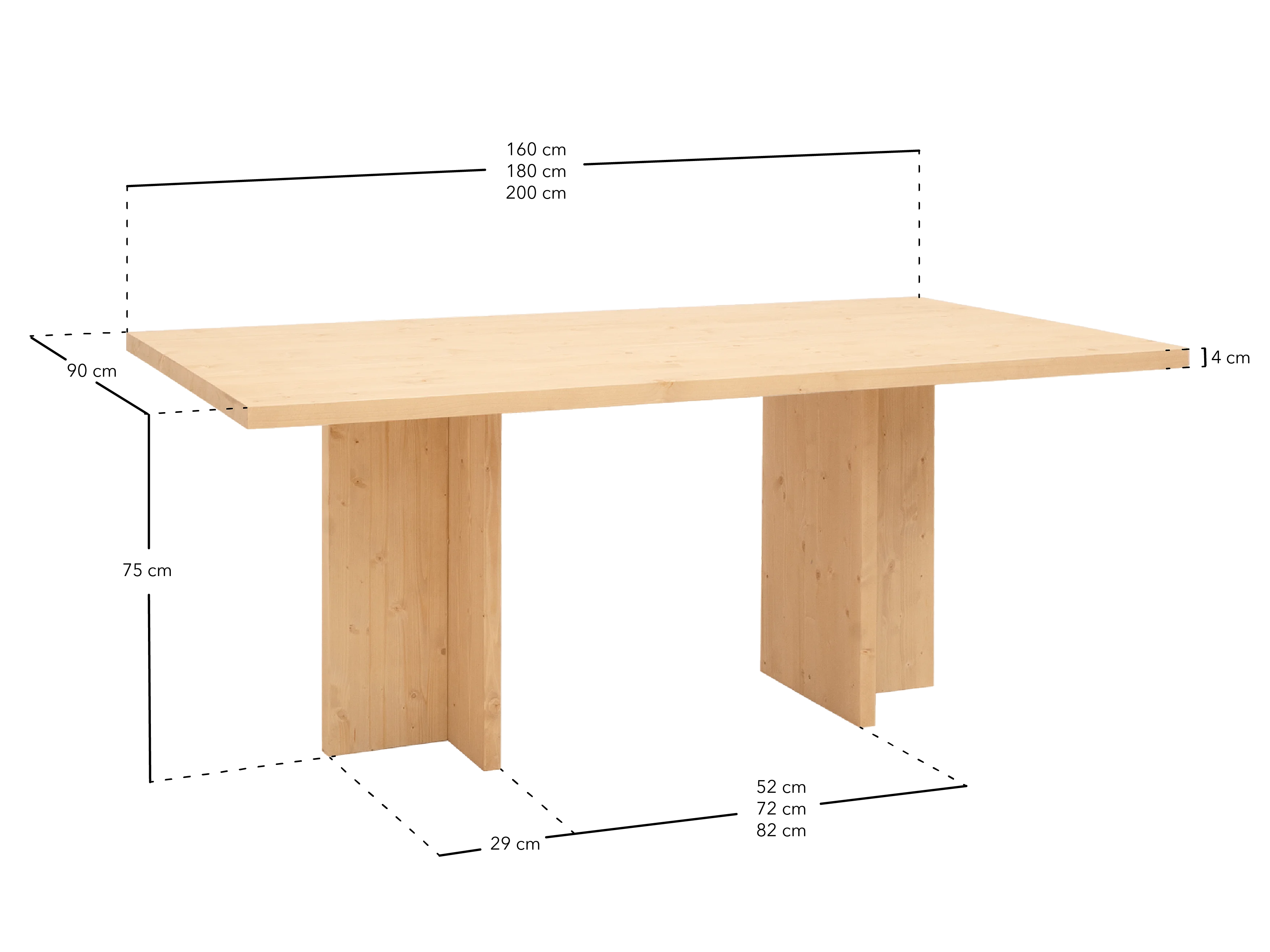 Mesa de comedor de madera maciza en tono natural 160x75cm - TENA - DECOWOOD