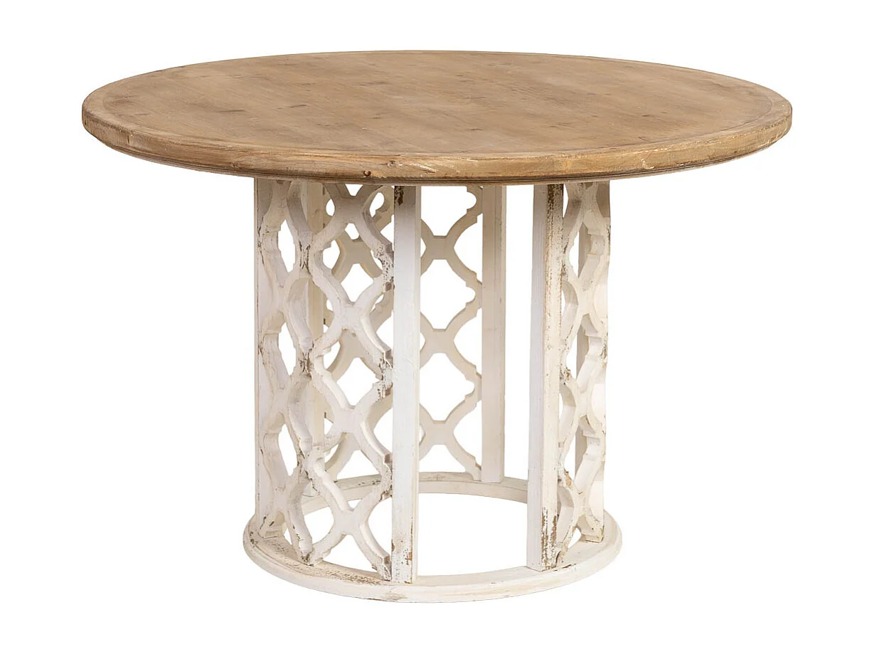 Mesa de comedor de madera marrón y blanca 120x120x79h cm