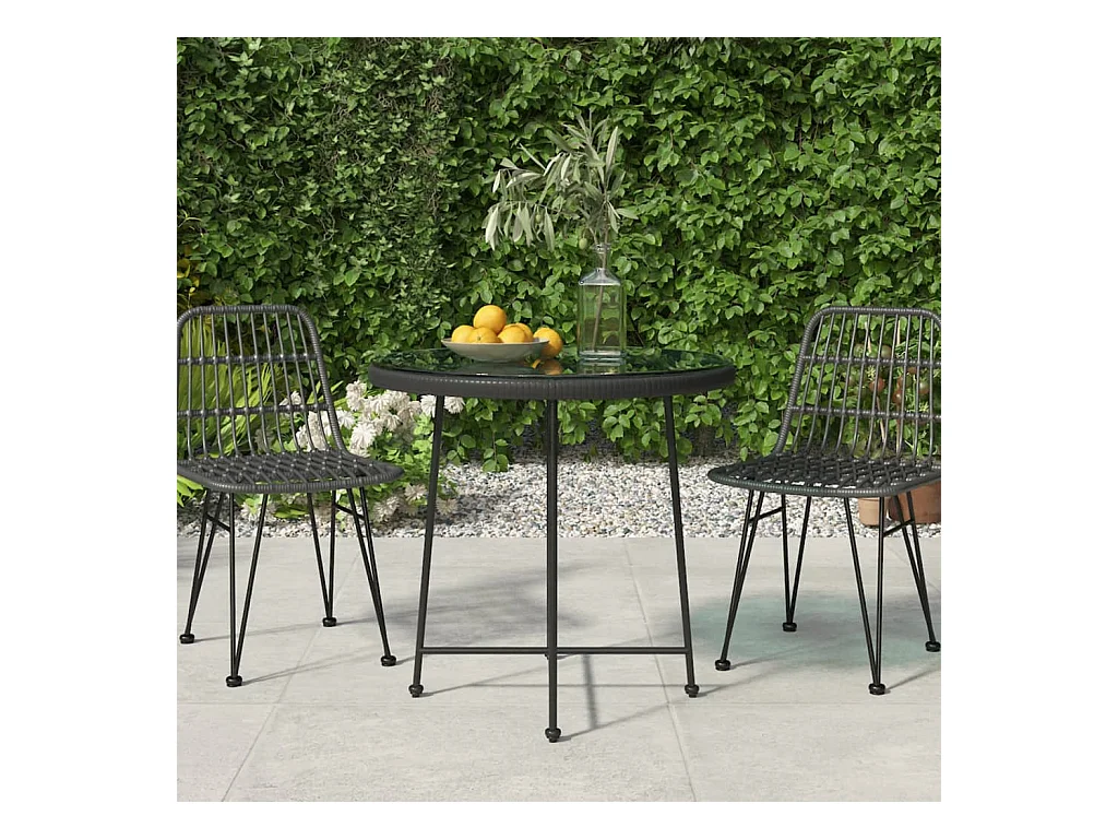 Mesa de comedor de jardín acero y vidrio negra 80x80x74 cm