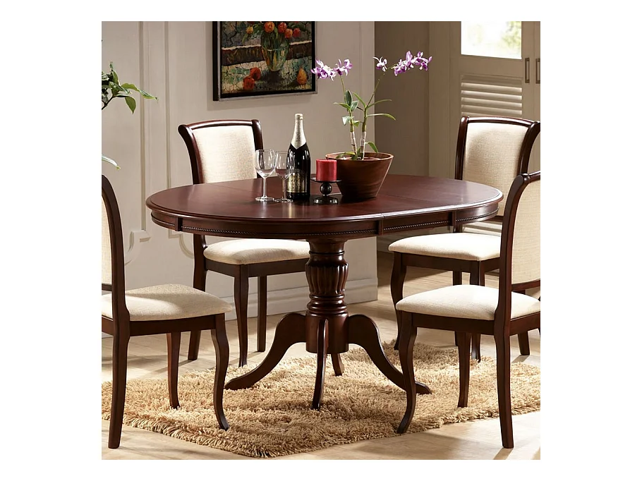 Mesa de comedor extensible 106-141 cm color nogal con pata central Ade