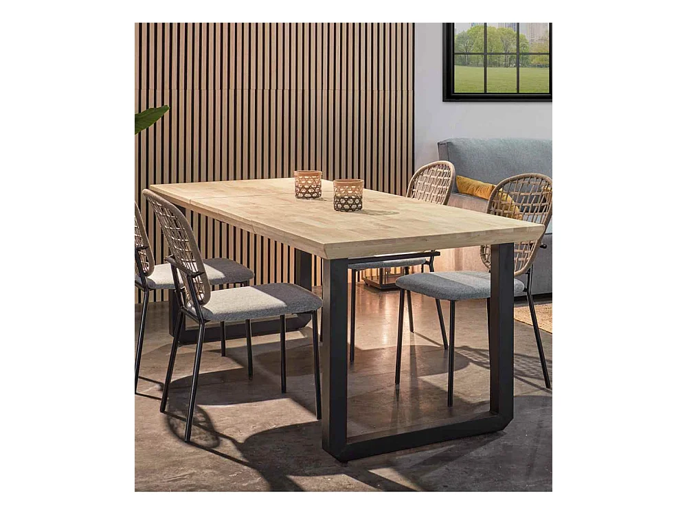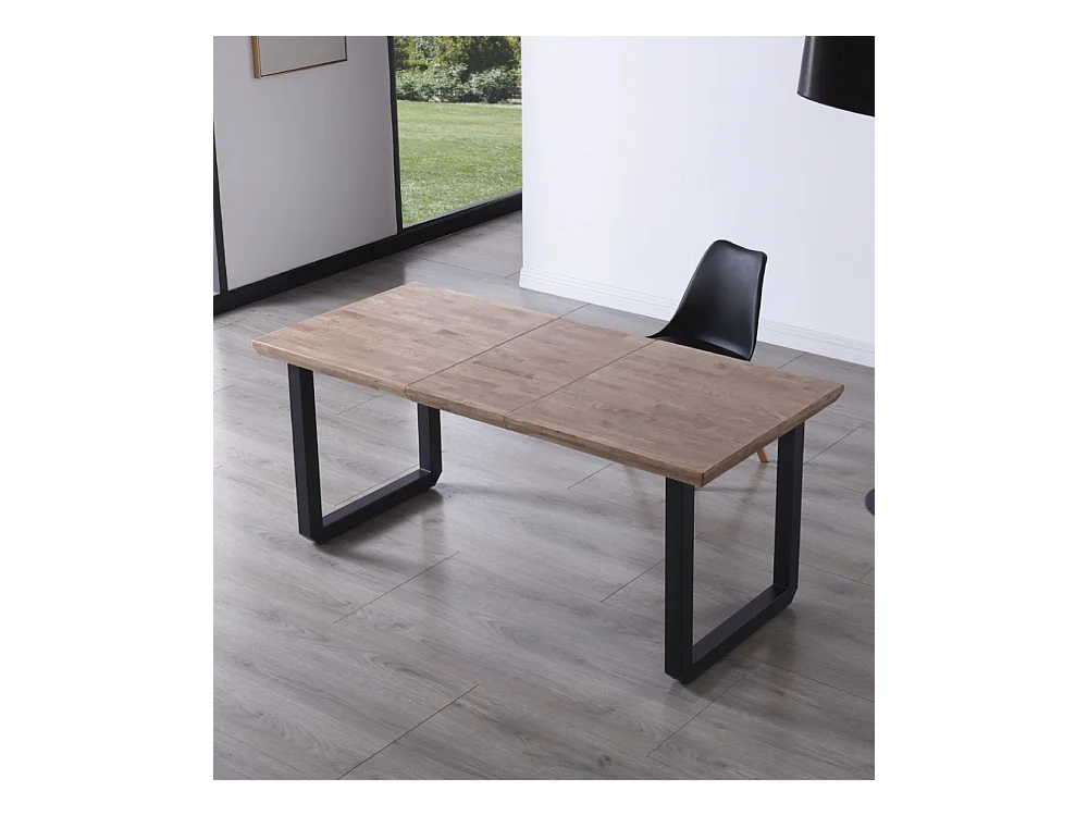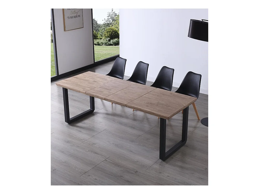 Mesa de comedor extensible de 77x80x148-180-220 cm en roble honey y patas negras Jack