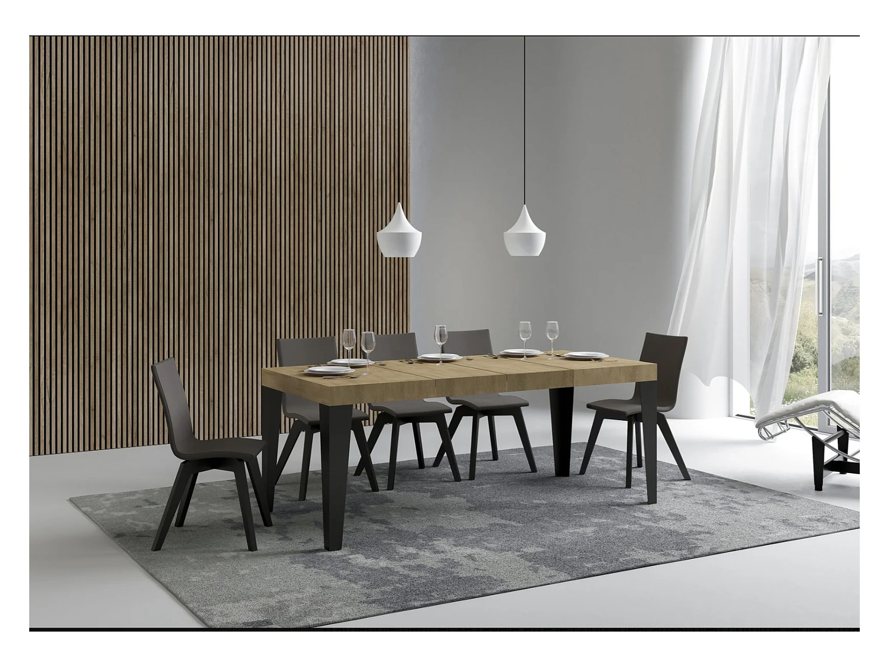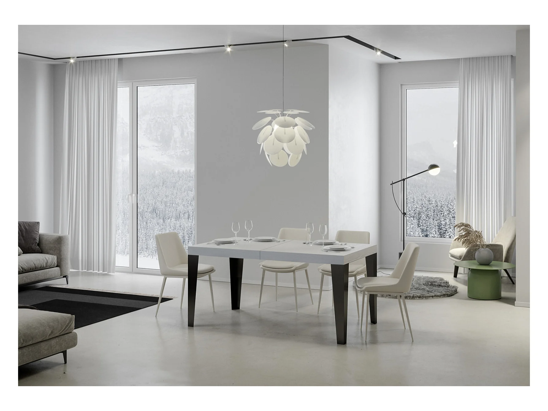 Mesa de comedor extensible Flavio-Color Blanco-Base y soporte con ruedas-Alargaderas -Ancho extensible