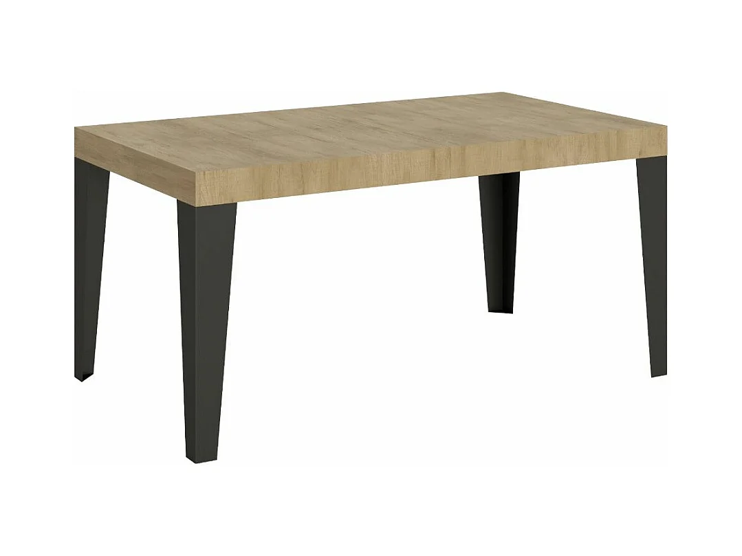 Mesa de comedor extensible Flavio-Color Natural-Soporte 4 pies-5 alargaderas finas-Ancho extensible
