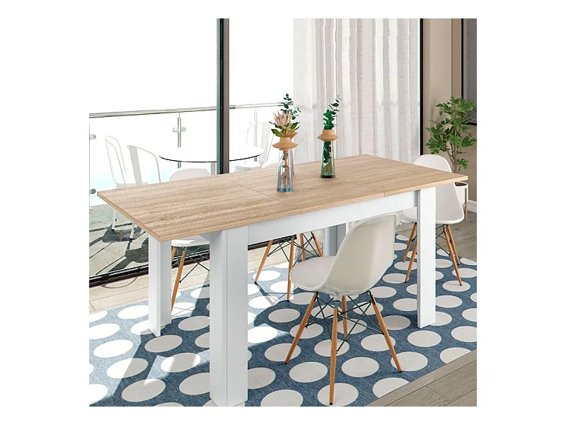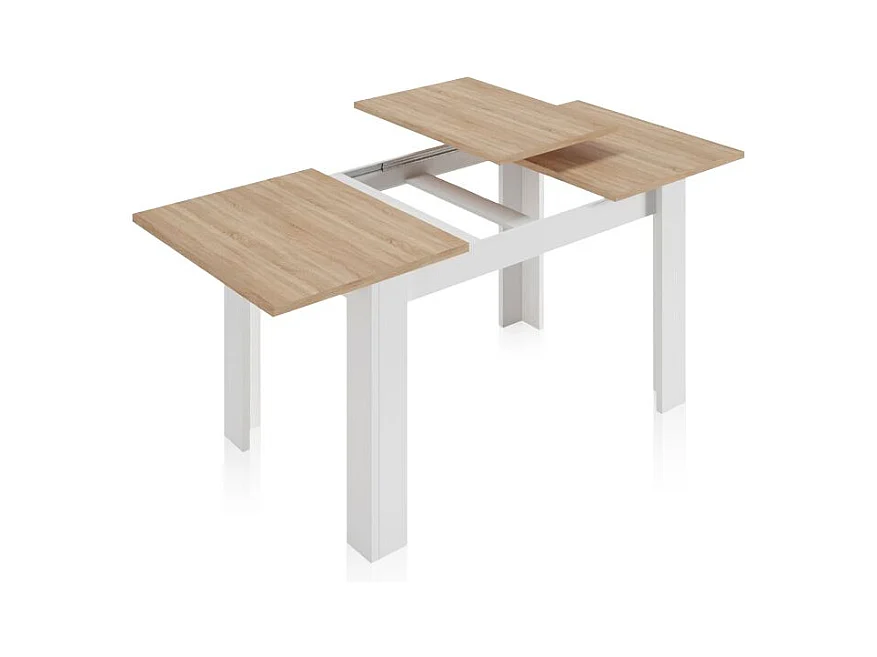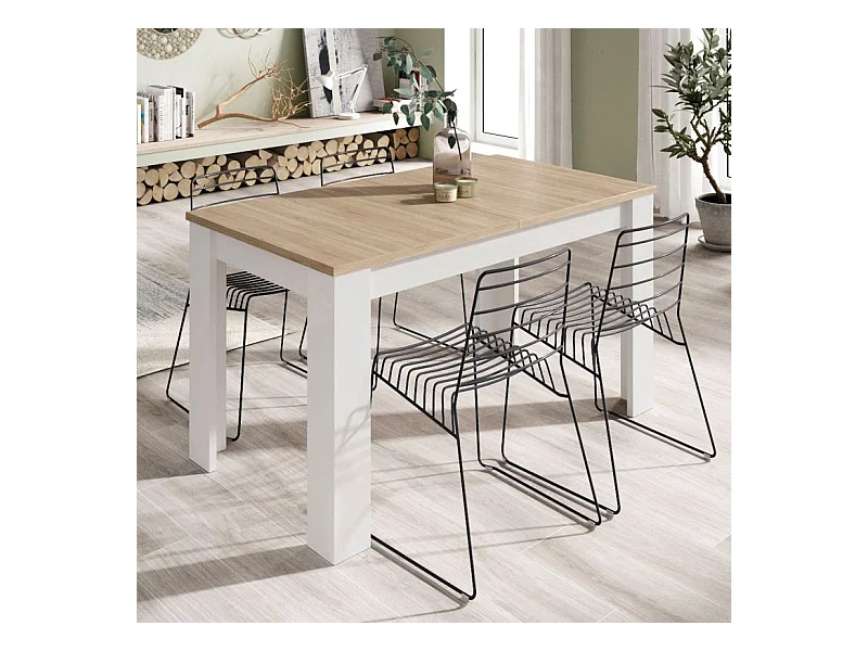 Mesa de comedor extensible Kendra 123 Blanco Artik (Blanco Mate) - Roble Canadian