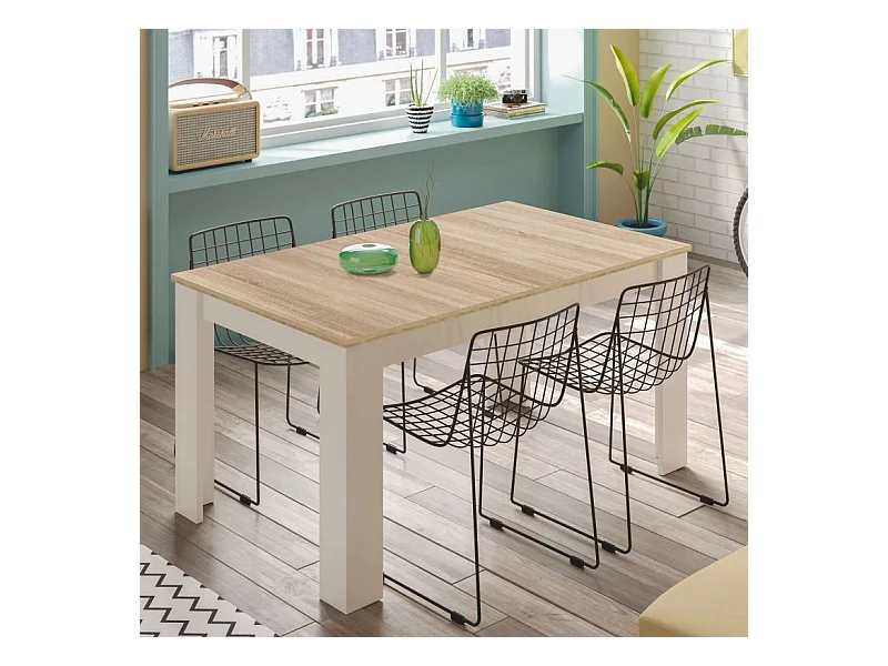 Mesa de comedor Nolix Blanco Artik (Blanco Mate) - Roble Canadian