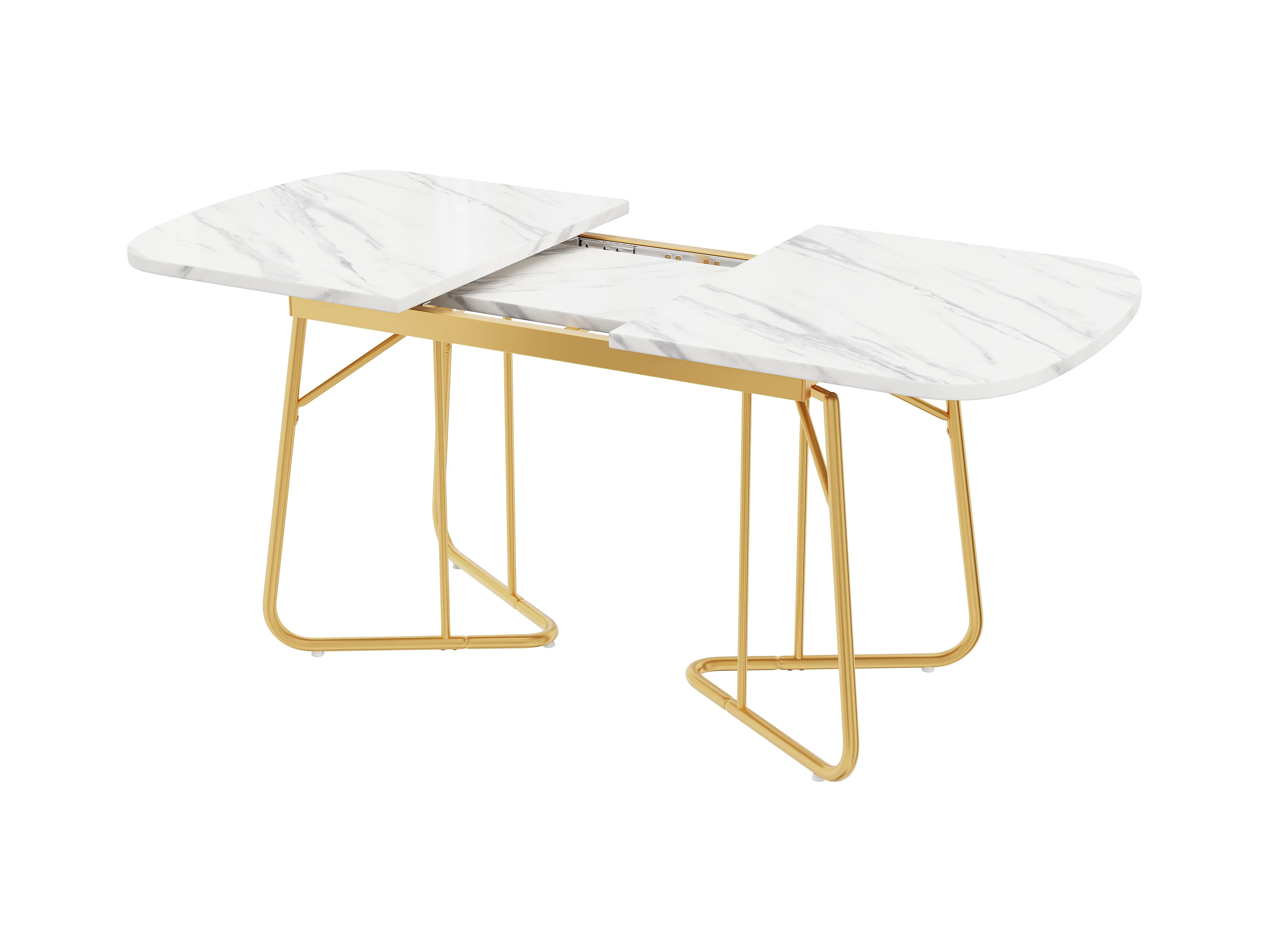Mesa de comedor extensible MDF efecto mármol metal dorado 4-6 personas 140/180x80cm