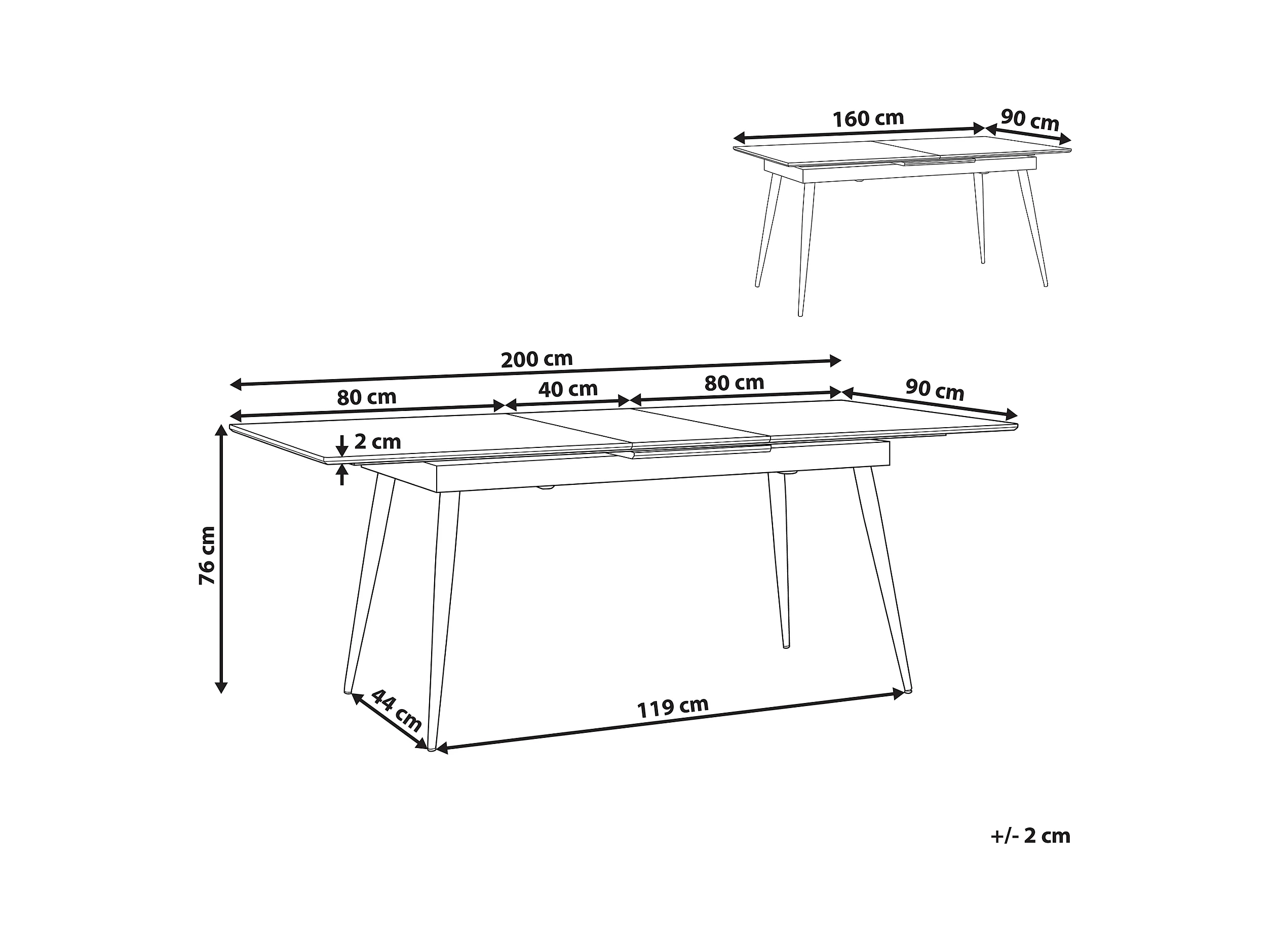 Mesa de comedor extensible MALDON Negro 160/200 cm 90 cm