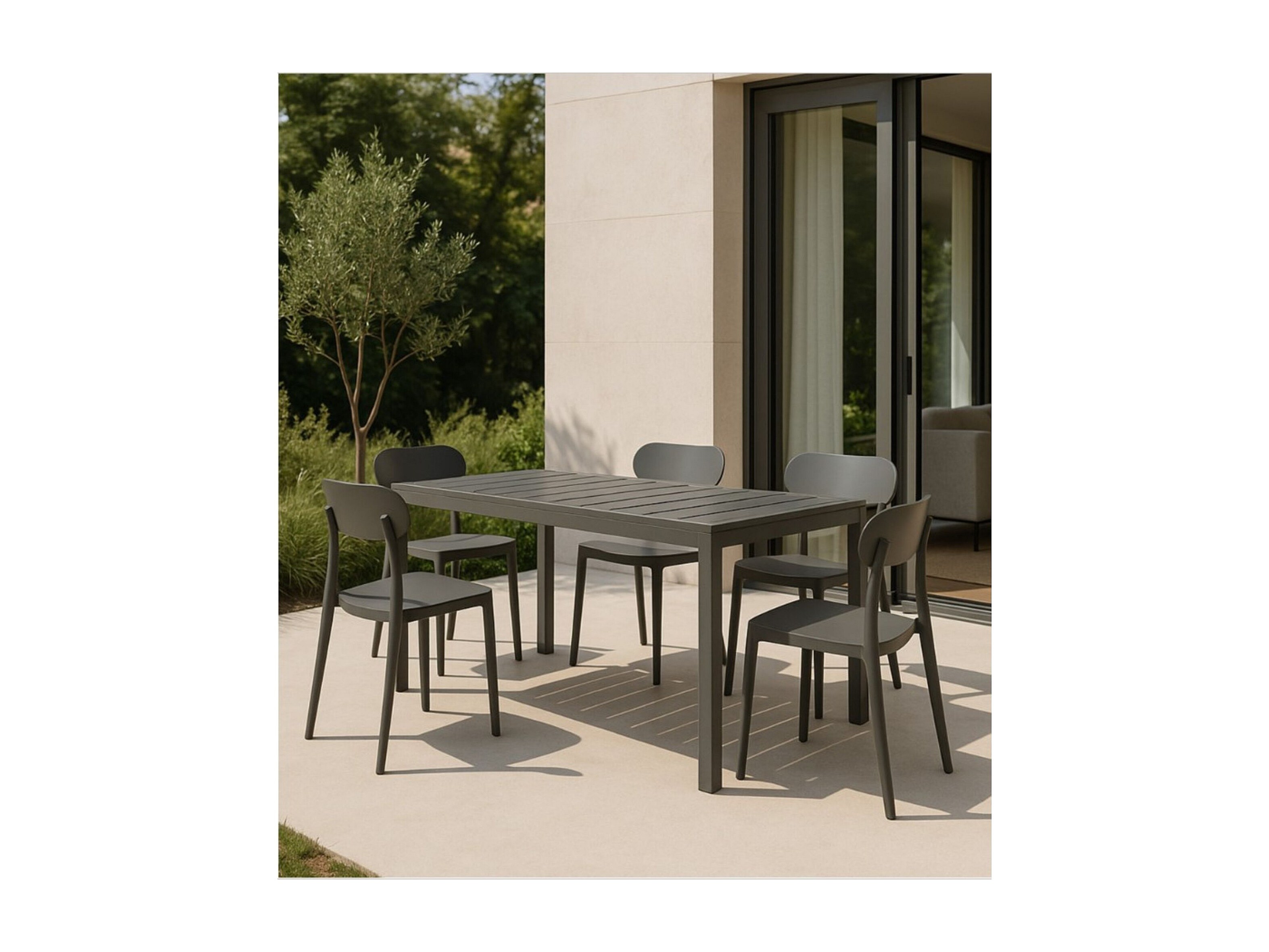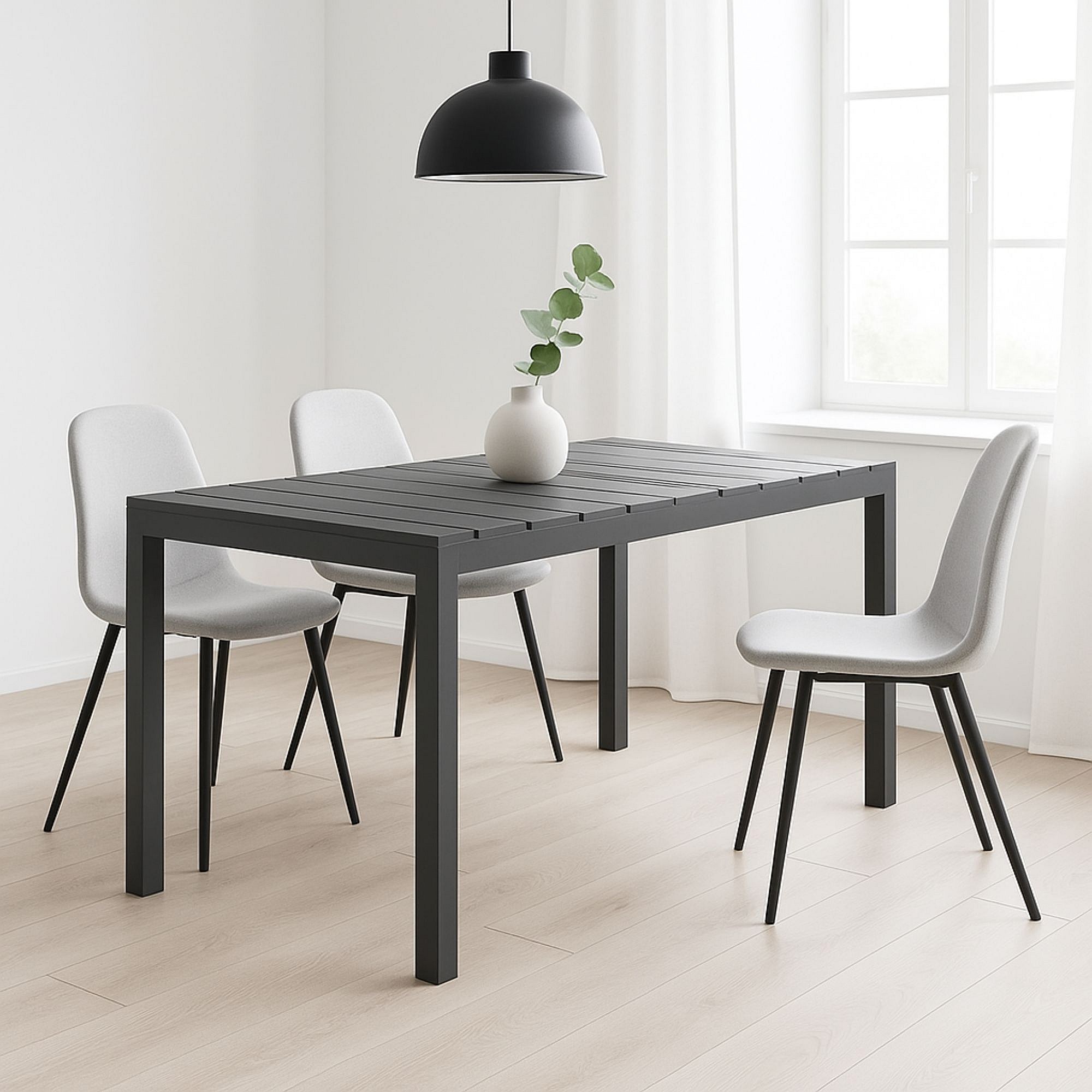 Mesa de Comedor Fija – 120x80x75 cm, Polipropileno Color Gris, Apta para Exterior, Diseño Moderno y Resistente.