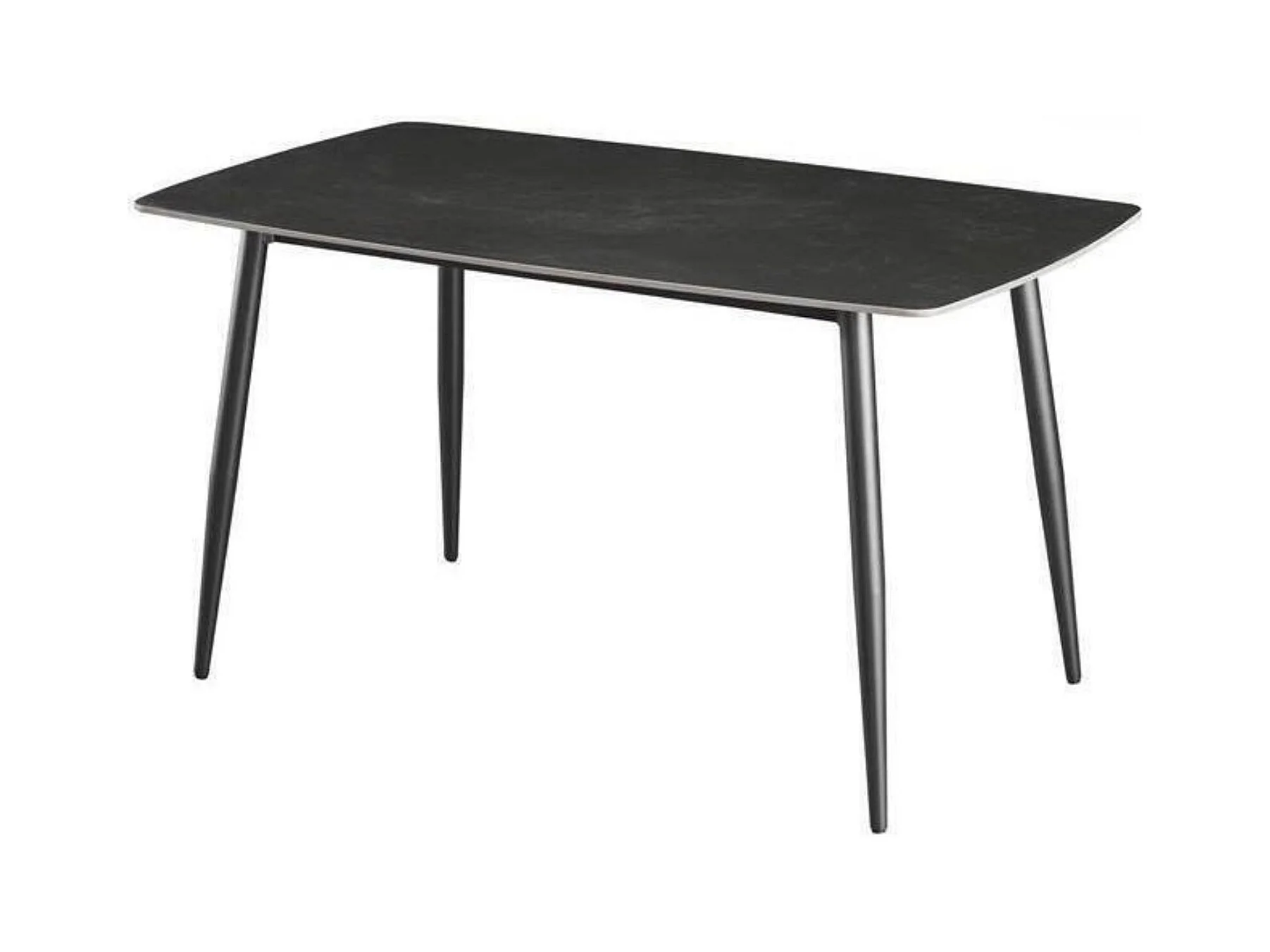 Mesa de Comedor Fija – 140x80x76 cm, Tapa Cerámica de Piedra Sinterizada Imitación Mármol Negro, Patas Metálicas en Negro, Diseño Moderno y Elegante