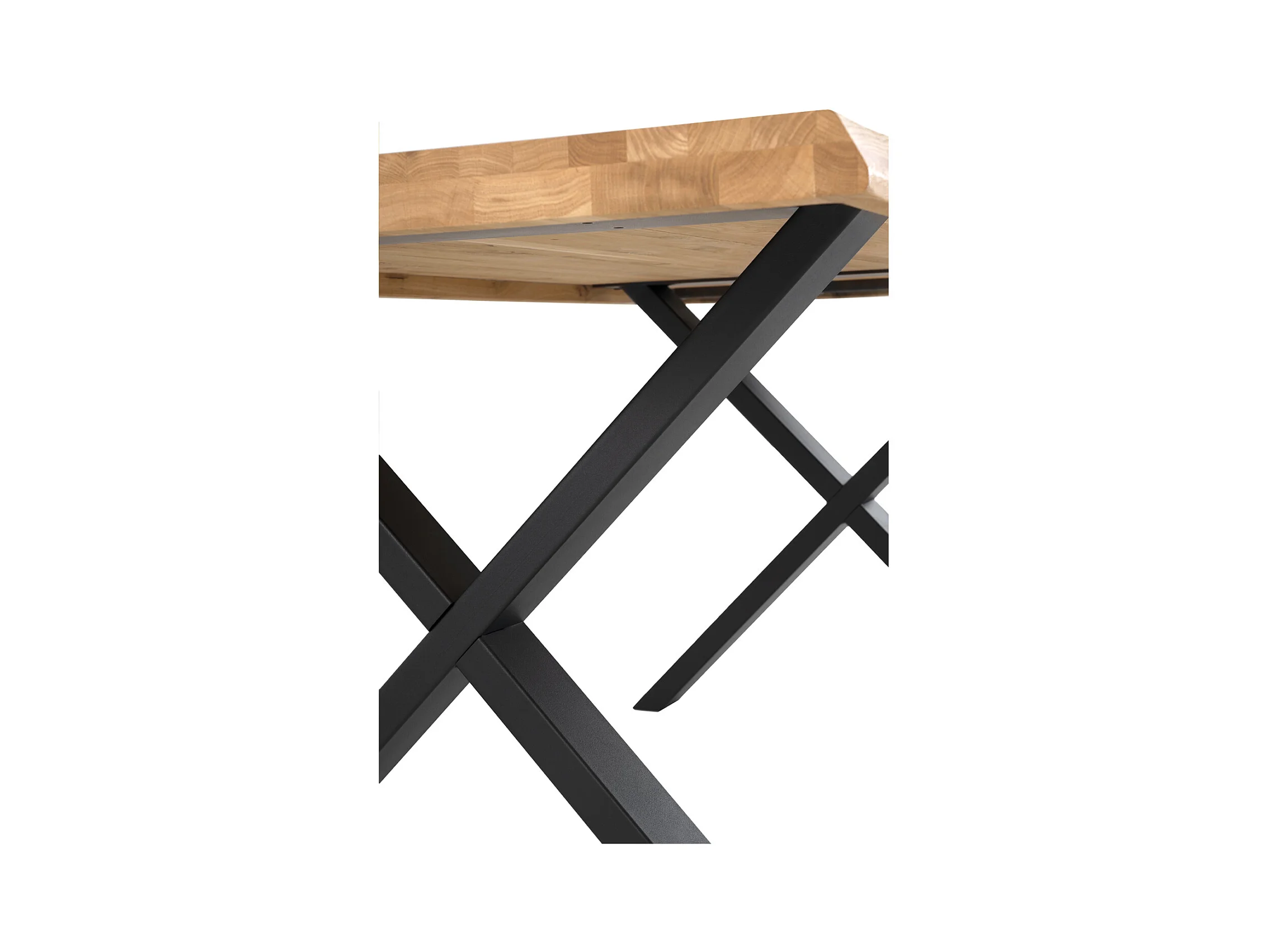 Mesa de comedor industrial Antika – Roble macizo claro y patas de metal en forma de X-Color Natural y negro-Anchura 200 cm