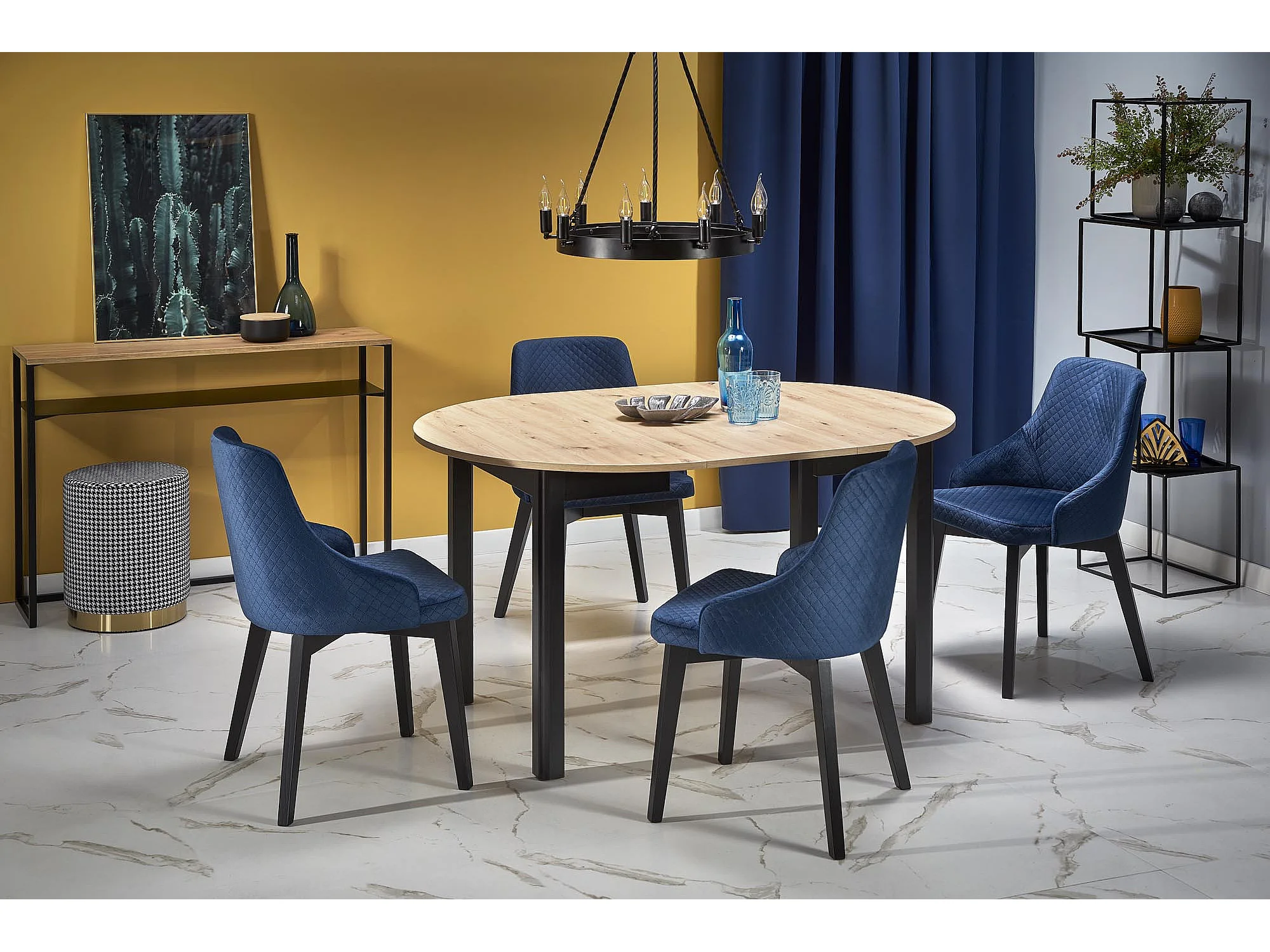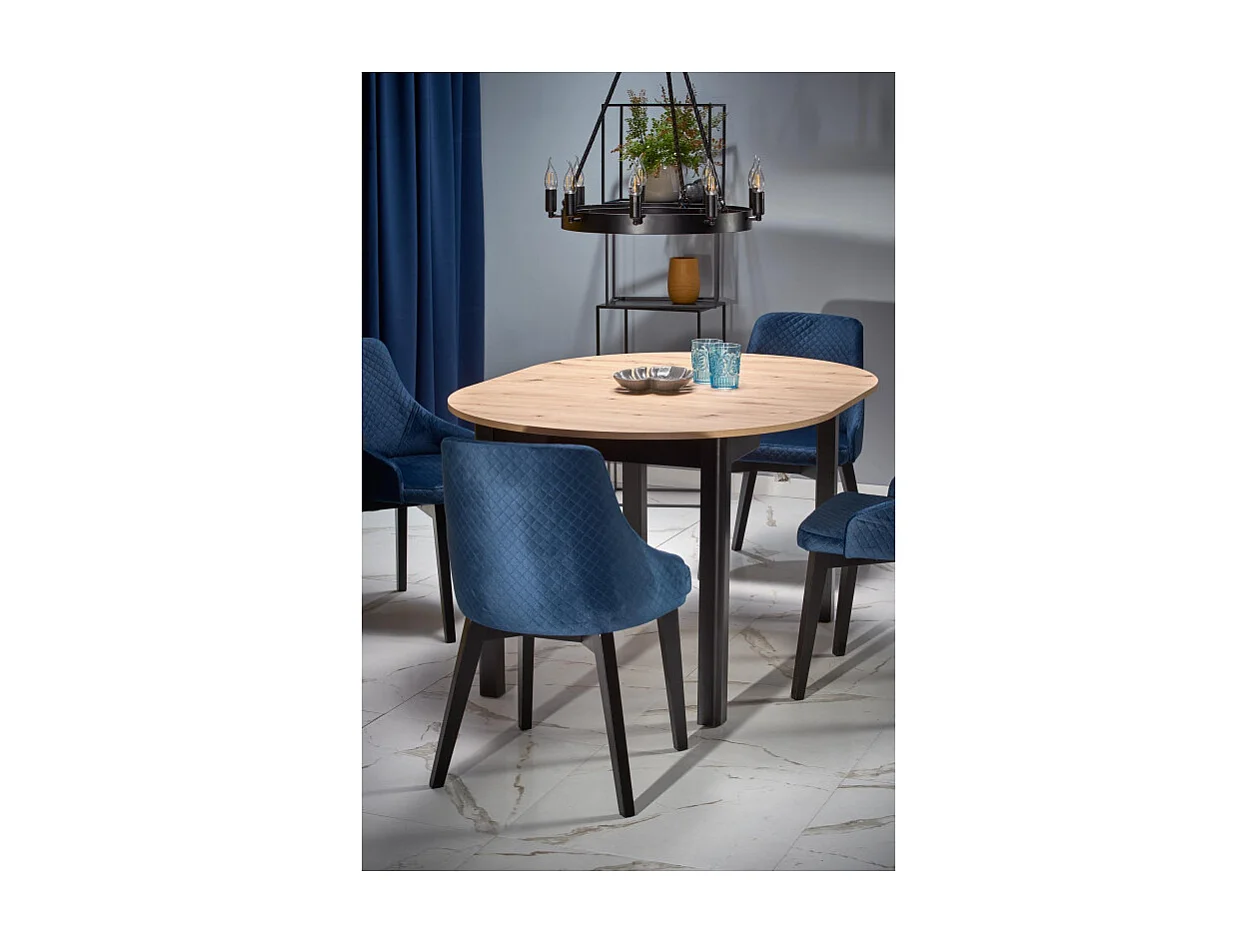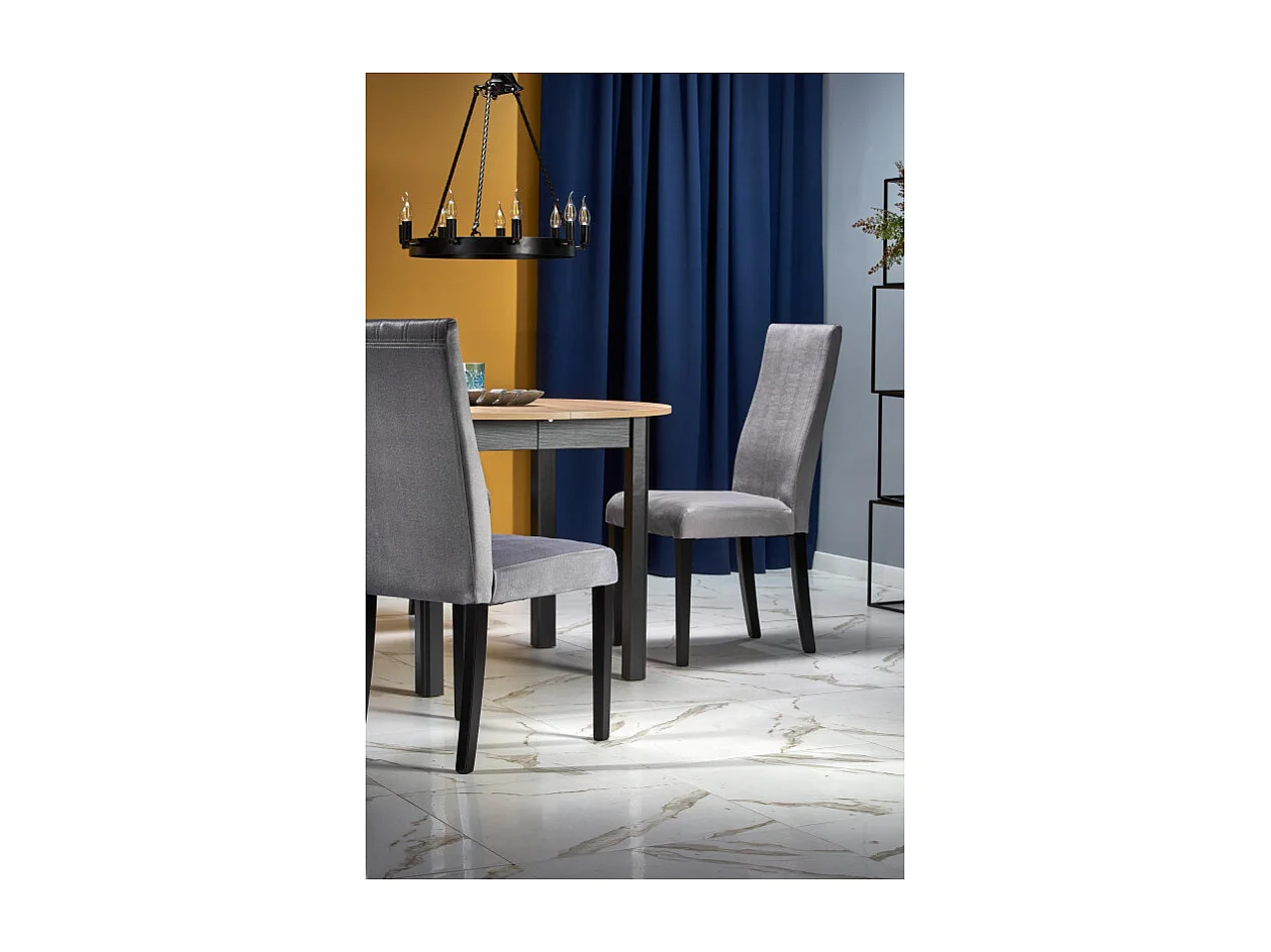 Mesa de comedor industrial redonda extensible con tablero de aspecto roble y patas negras CARENE