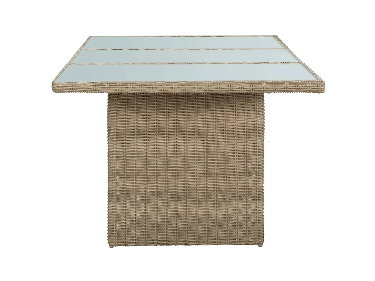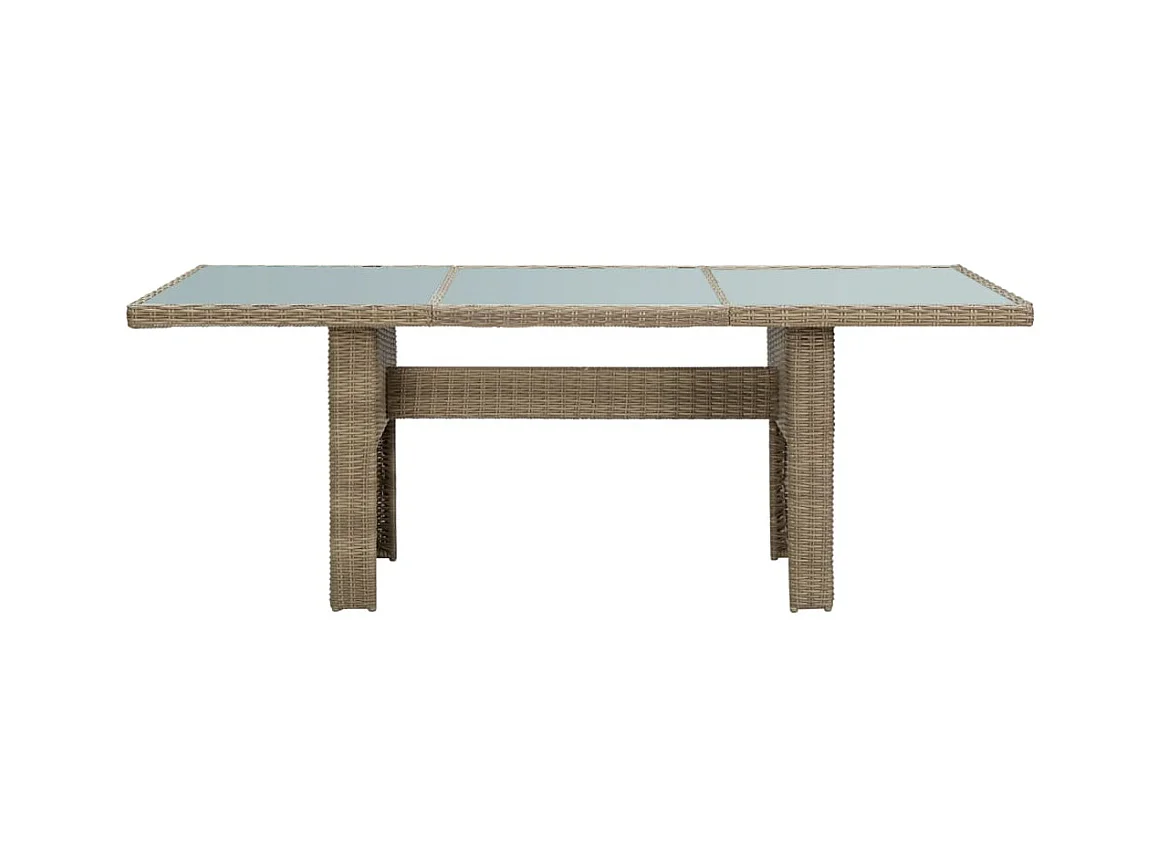 Mesa de comedor jardín vidrio y ratán PE marrón 200x100x74 cm KOW22532