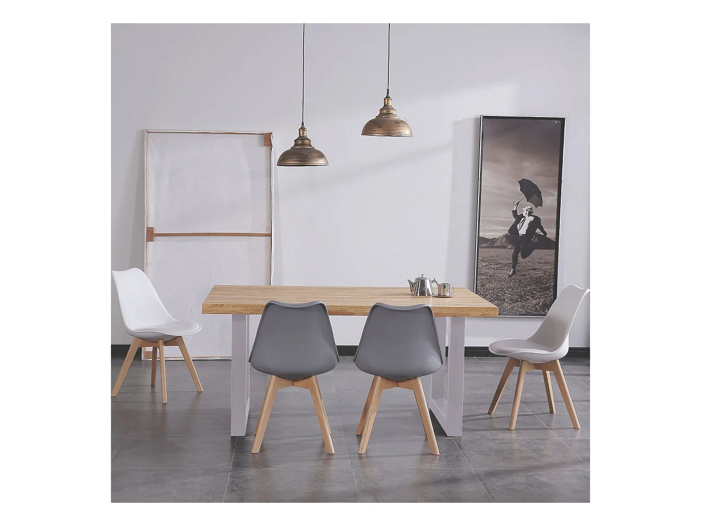Conjunto mesa comedor fija + 4 sillas Teca blanco