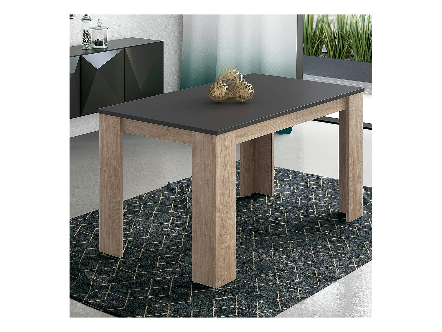 Mesa de Comedor, Mesa de Salón Fija, Robusta y Funcional, Color Roble - Grafito, Medidas: 140 cm (Largo) x 80 cm (Ancho) x 75 cm (Alto) – Meyvaser