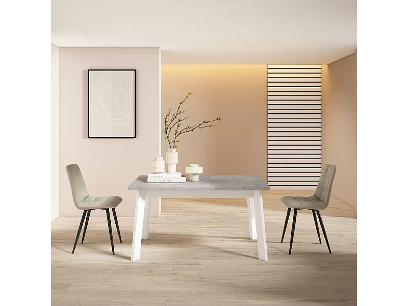 Mesa de comedor extensible Danna 140 Blanco Artik (Blanco Mate) - Gris Cemento
