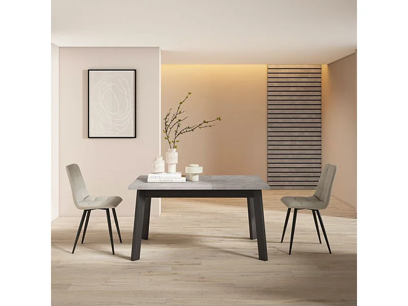 Mesa de comedor rectangular Tsara 130 cm de hormigón gris con patas de metal gris oscuro