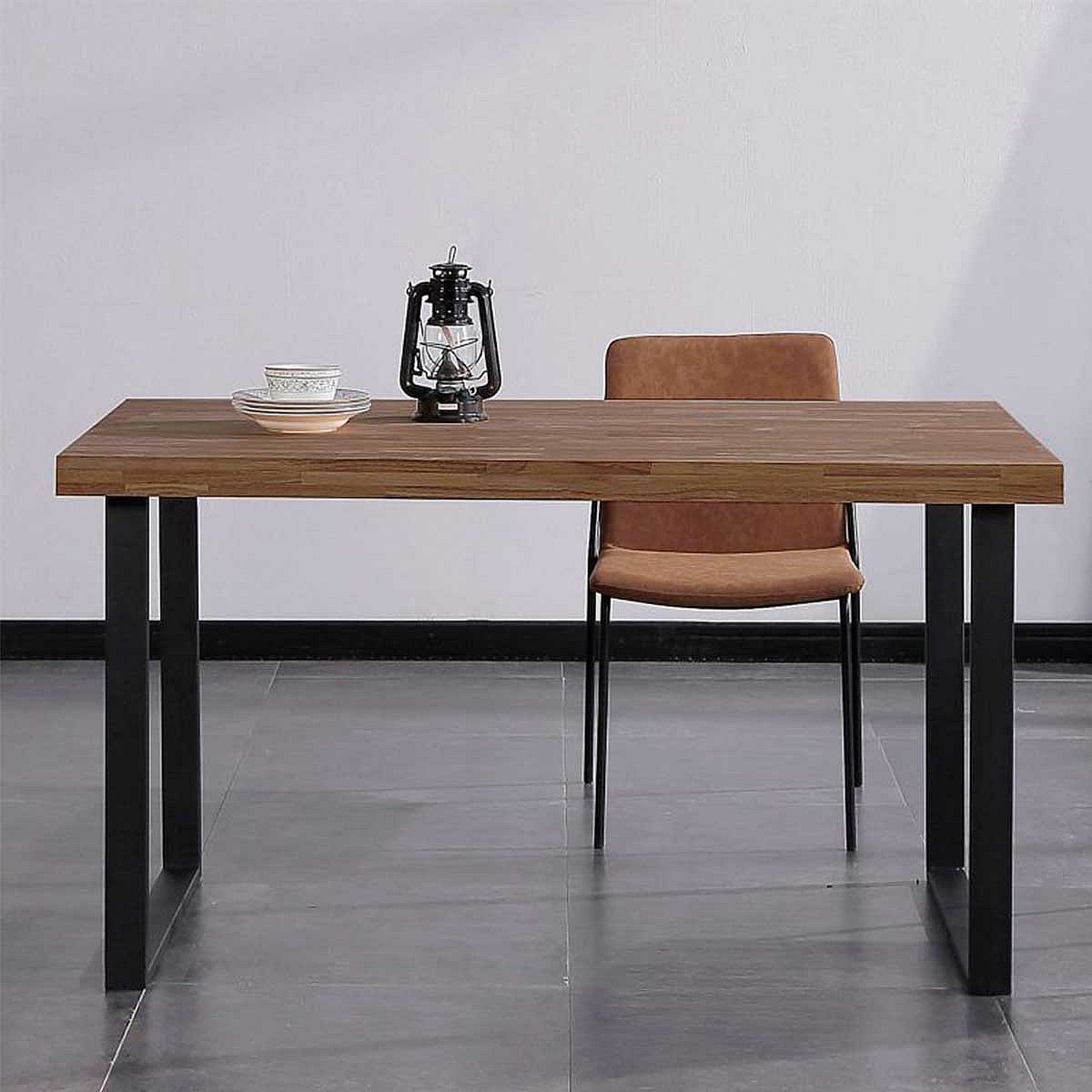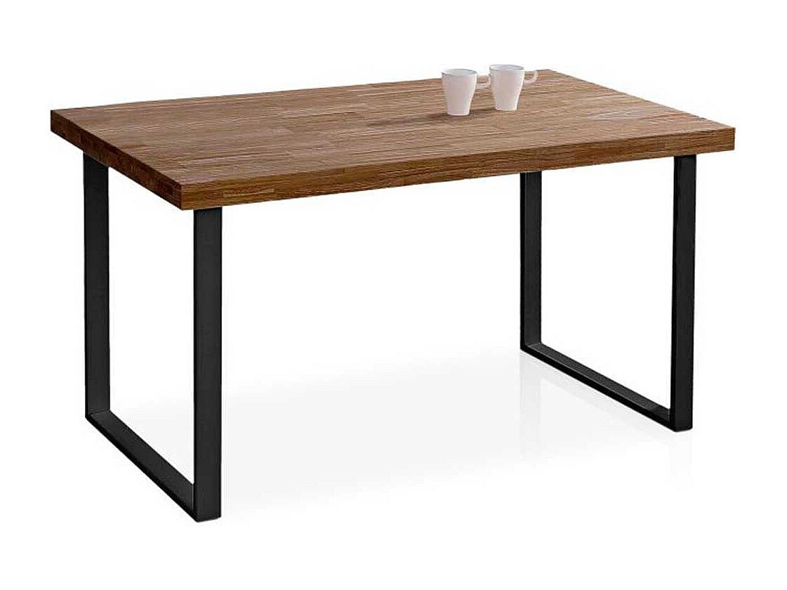 Mesa de comedor Natural patas en U madera de roble sostenible roble american/Negro 76,5x140x80 cm Adec