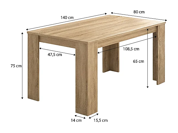 Mesa de comedor Naya en roble canadian 140X80 cm Roble Canadian