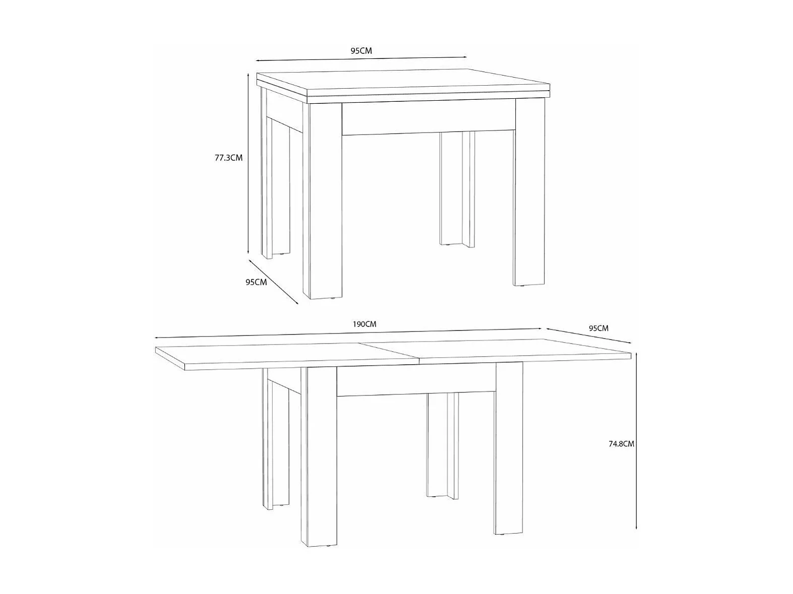 Mesa de comedor o cocina cuadrada extensible de 77x95-190x95 cm en color beige Luter