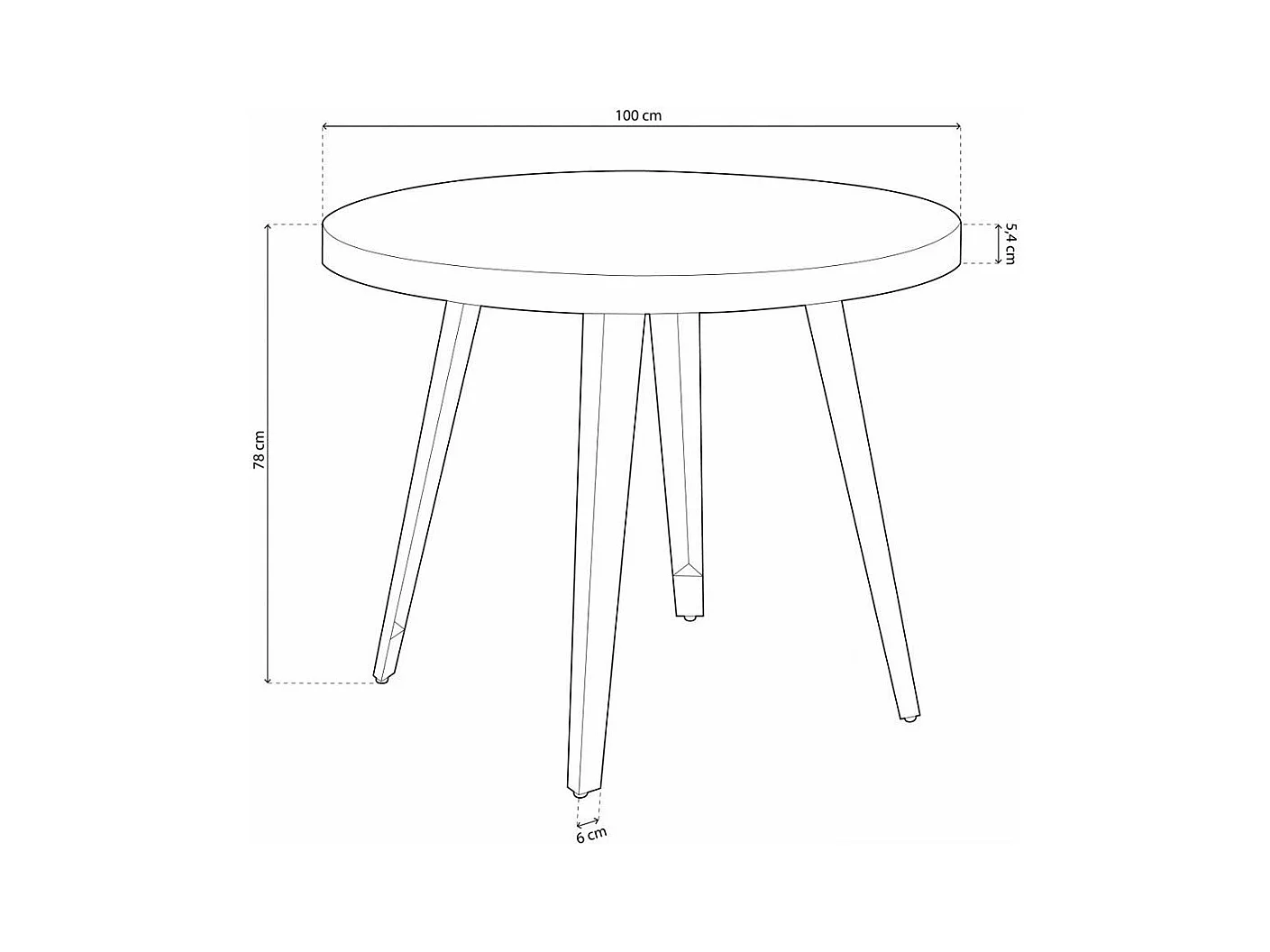 Mesa de comedor o cocina redonda de 76x100x100 cm en color marrón y patas negras Skadi