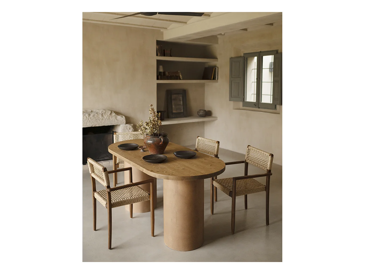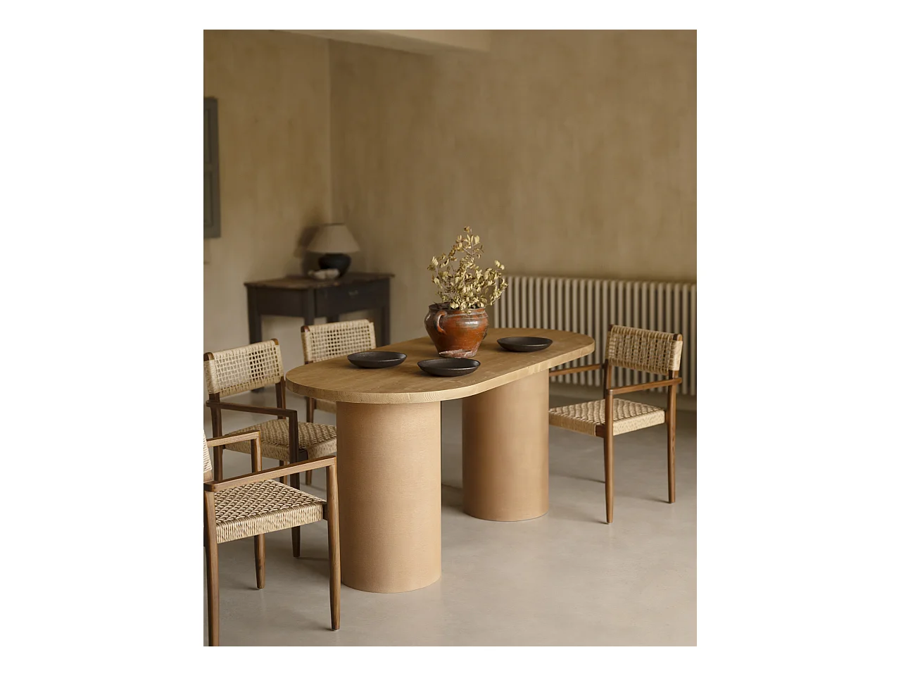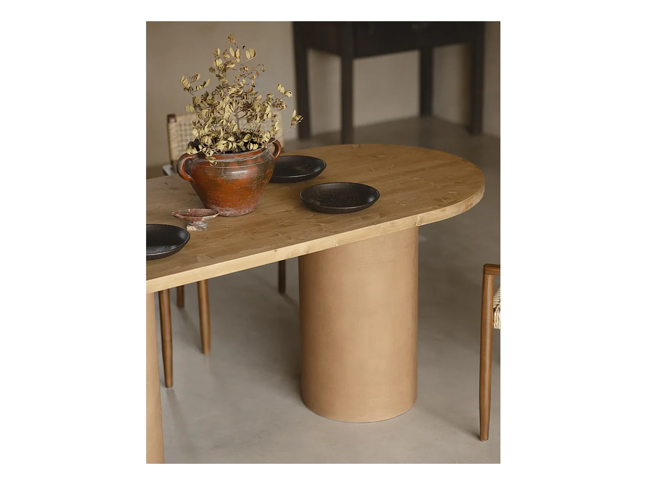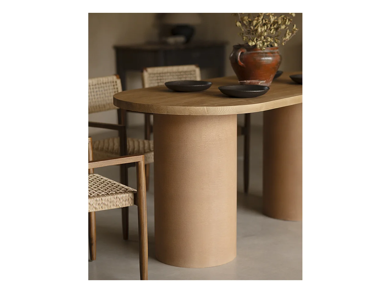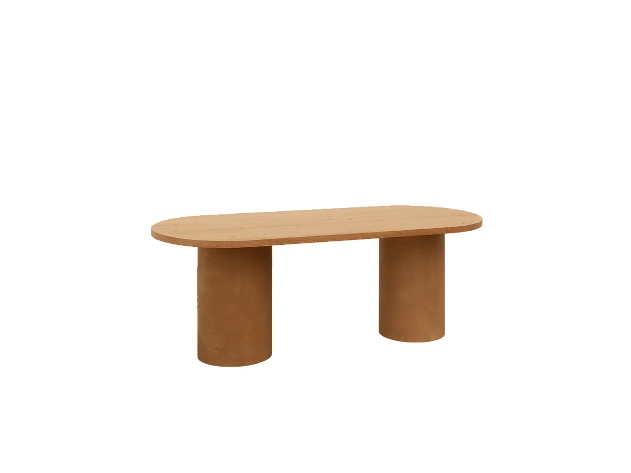 Mesa de comedor ovalada de madera maciza tono roble medio y patas de microcemento en tono terracota DECOWOOD de 180x75cm - LUCÍA - DECOWOOD