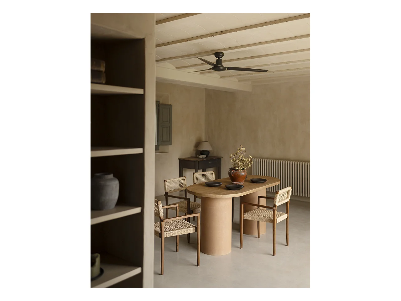 Mesa de comedor ovalada de madera maciza tono roble oscuro y patas de microcemento en tono tierra DECOWOOD de 180x75cm - LUCÍA - DECOWOOD