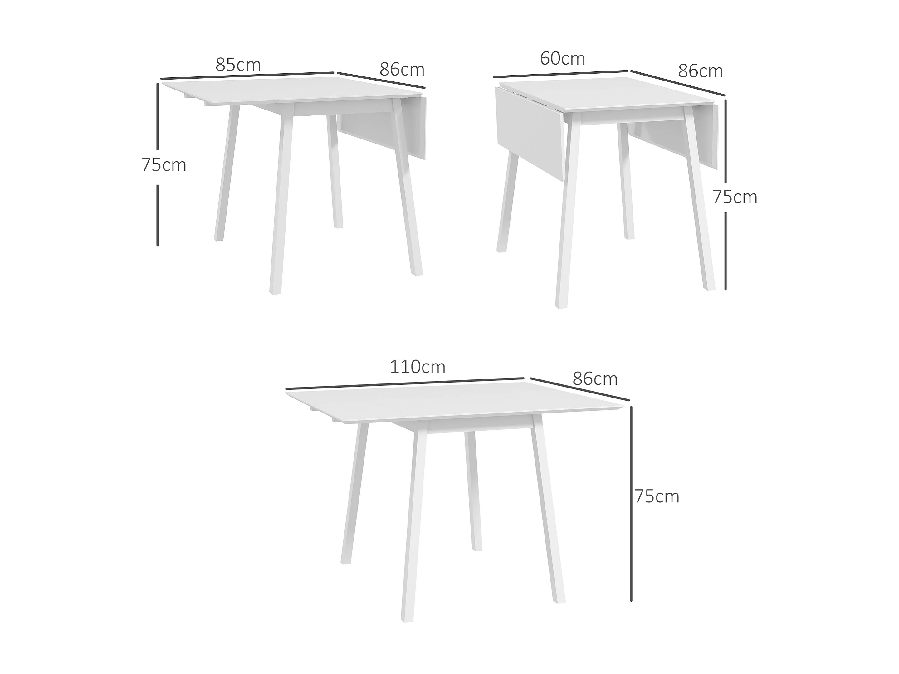 Mesa de comedor plegable de madera para 2-4 personas, cocina, comedor, color blanco, 110 x 86 x 75 cm