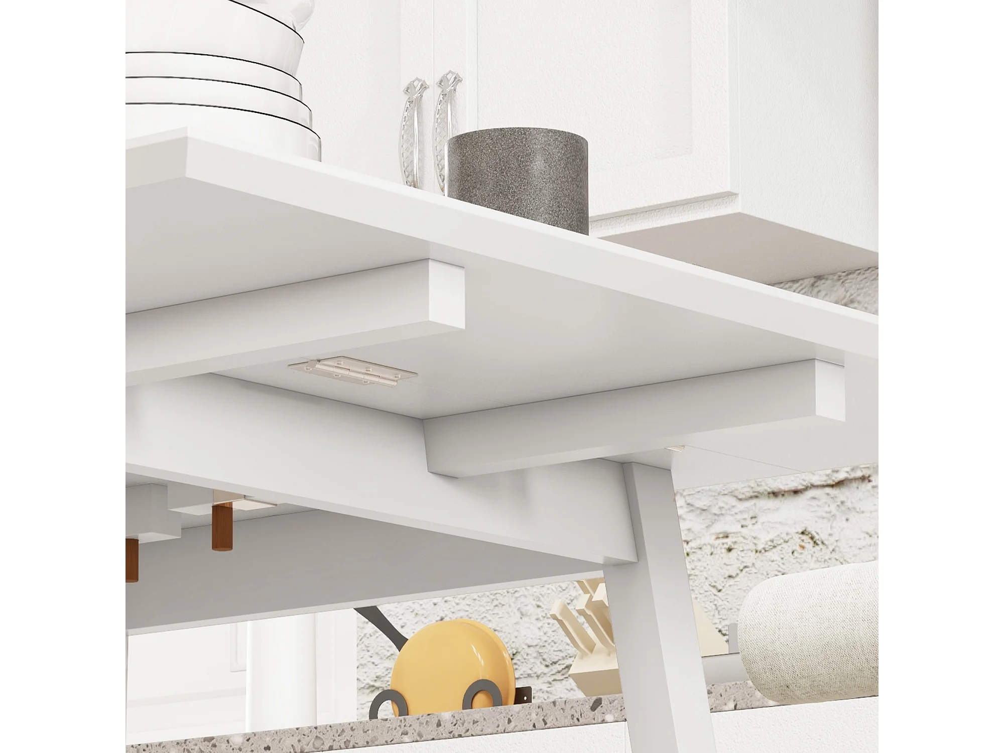 Barra giratoria de MDF blanco con almacenaje y puertas de cristal para cocina y salón 120 cm