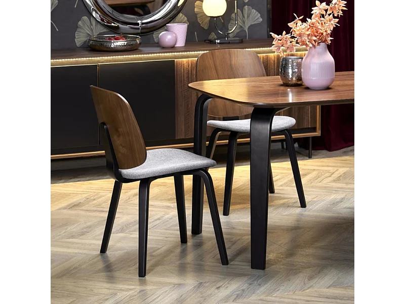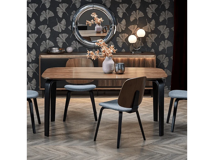 Mesa de comedor rectangular 160 cm con tablero de nogal y patas de madera negra PEDRO