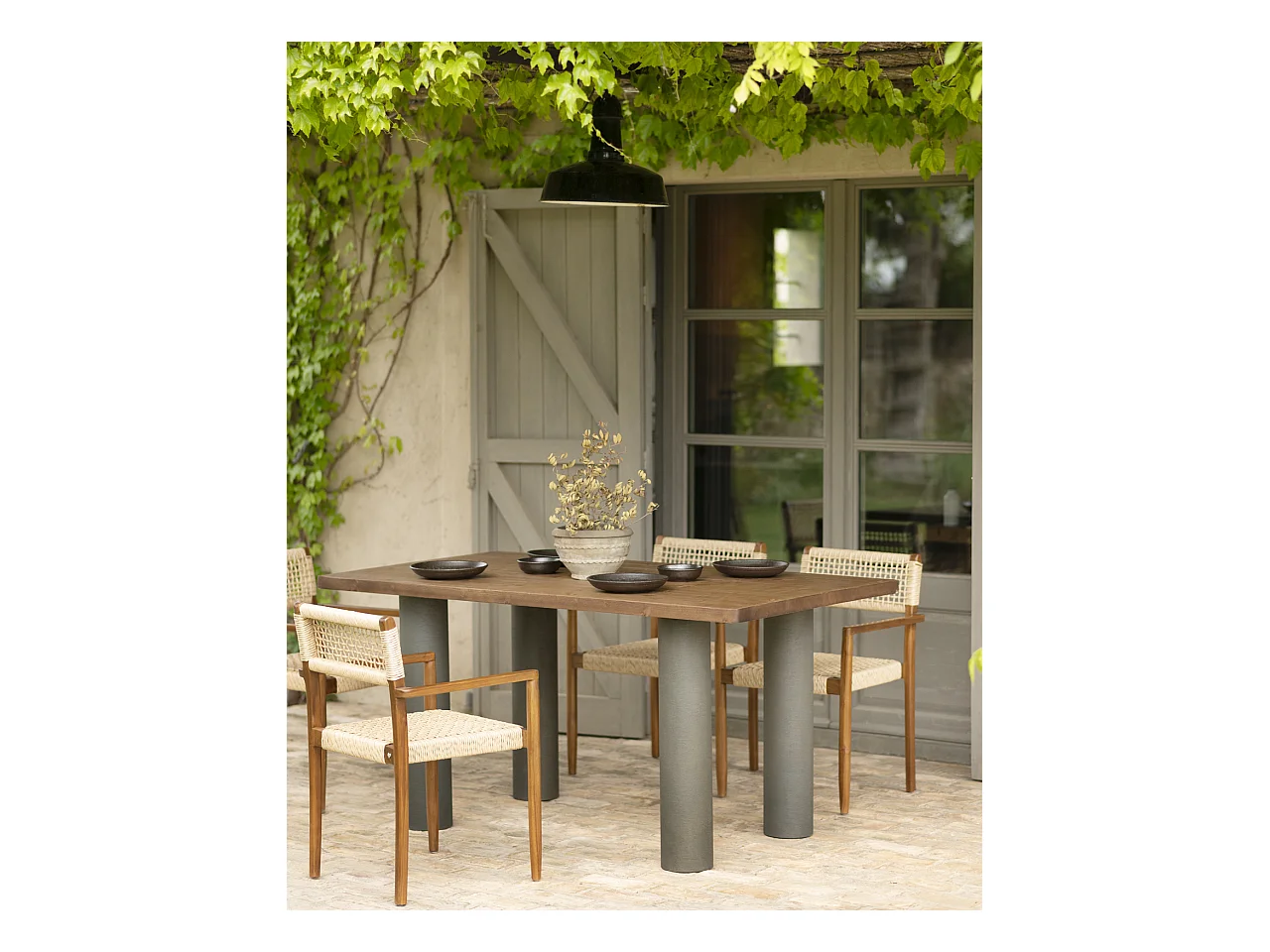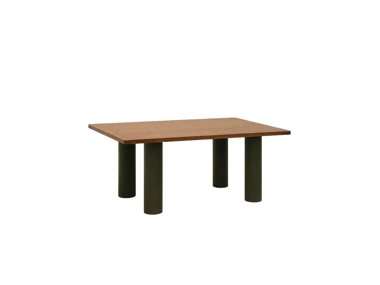 Mesa de comedor rectangular de madera maciza en tono roble oscuro y patas de microcemento en tono verde DECOWOOD de 180x75cm - LUCÍA - DECOWOOD