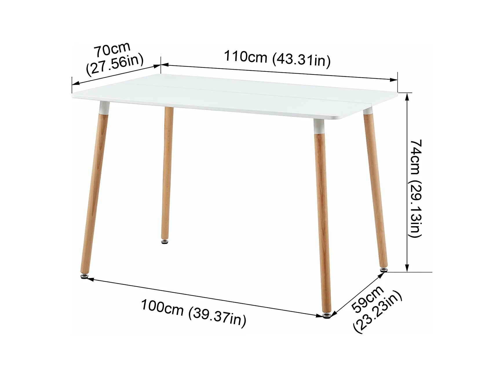 Mesa de Comedor Rectangular Escandinava en Madera Blanca - 110 x 70 cm