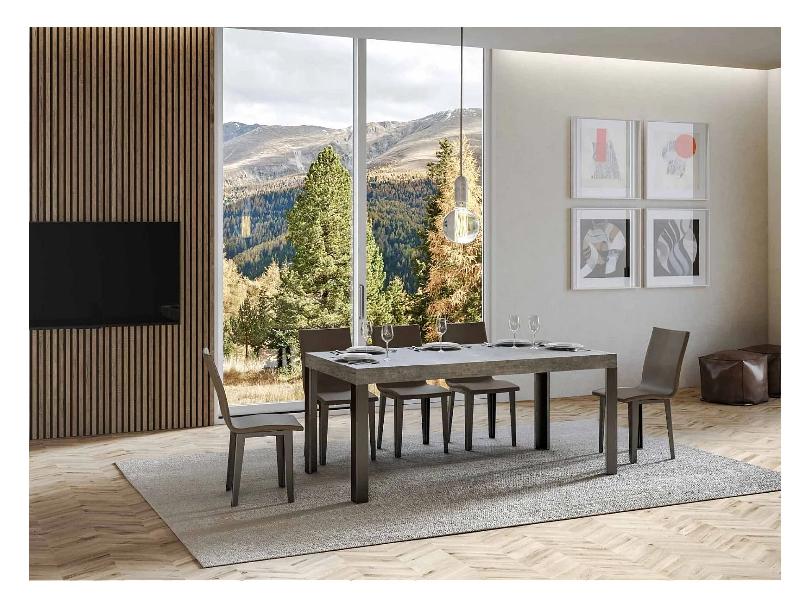 Mesa de comedor rectangular Liva 180 cm gris hormigón con patas de metal gris oscuro